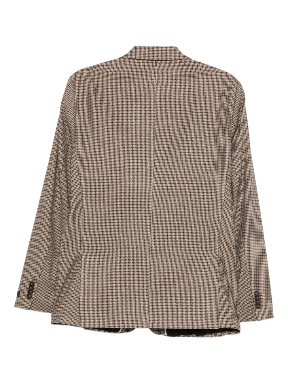 Верблюжий коричневый клетчатый узор застежка на две пуговицы лацкан с вырезом накладные карманы с клапанами длинные рукава