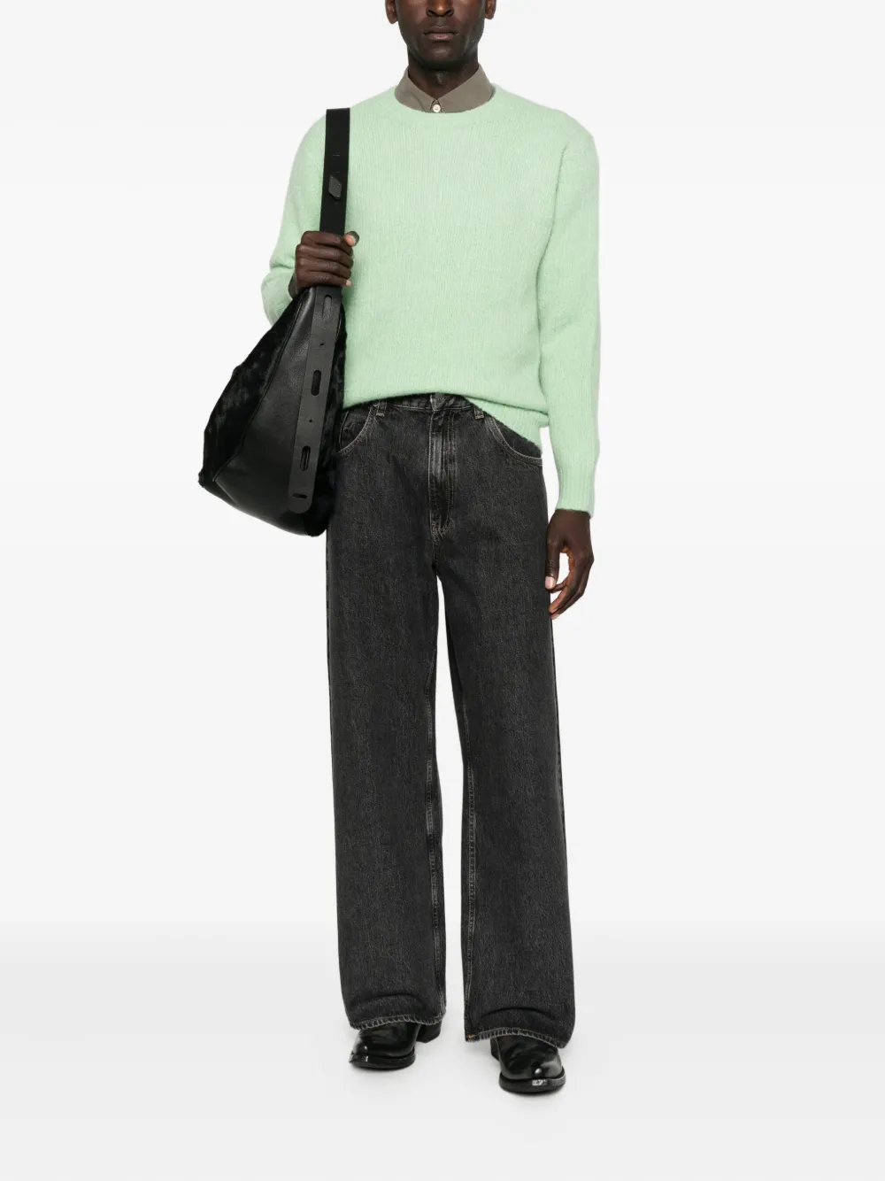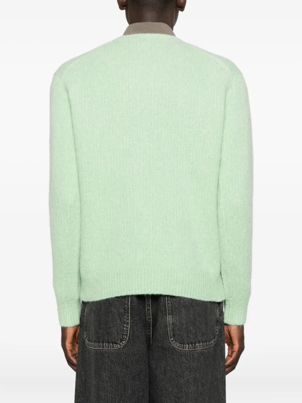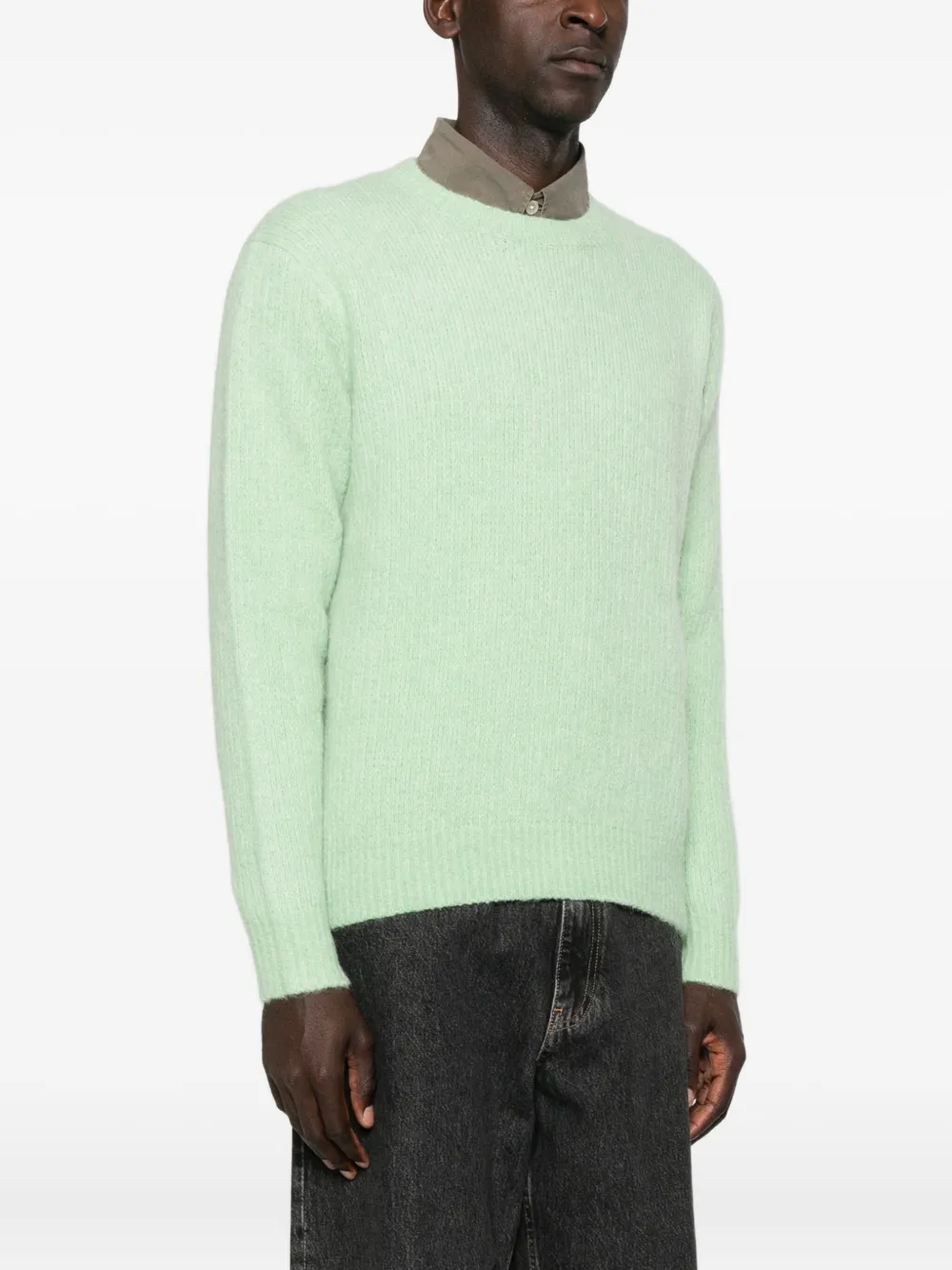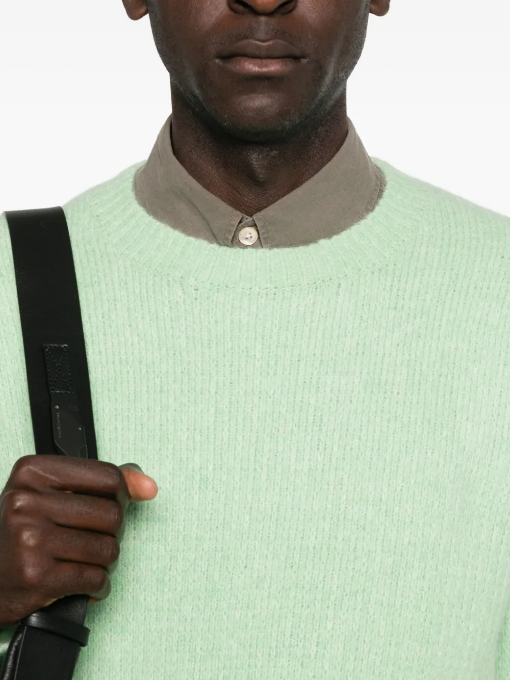 Светло-зеленый вязаная в рубчик круглый вырез длинные рукава прямой подол