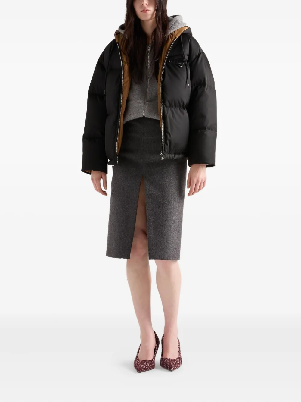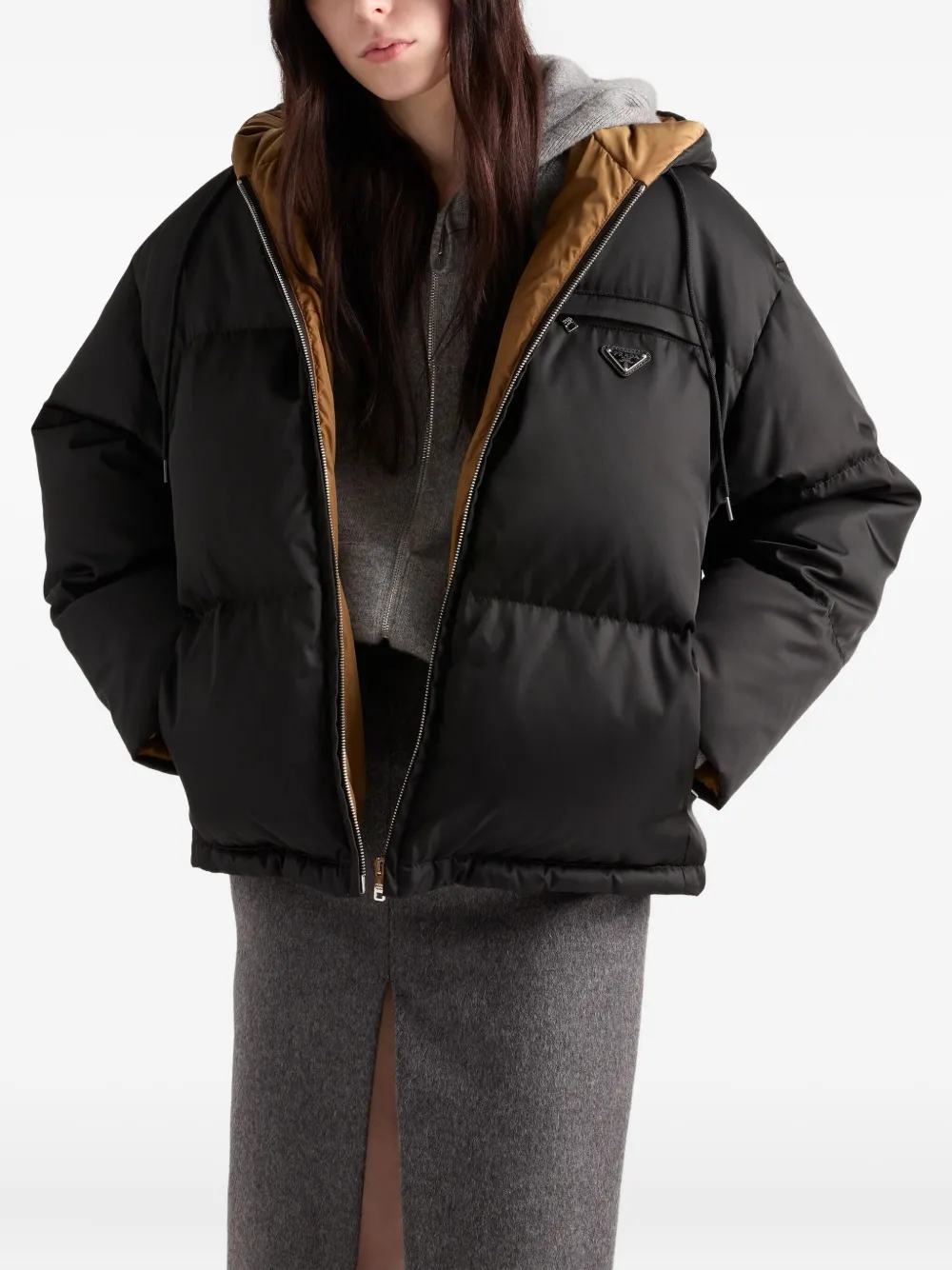 Пуховик с капюшоном Prada, черный