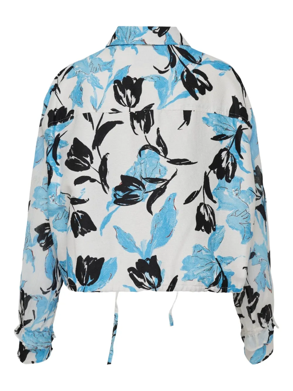 Синий/белый/черный тюльпановый принт подол со шнурком воротник-рубашка длинные рукава