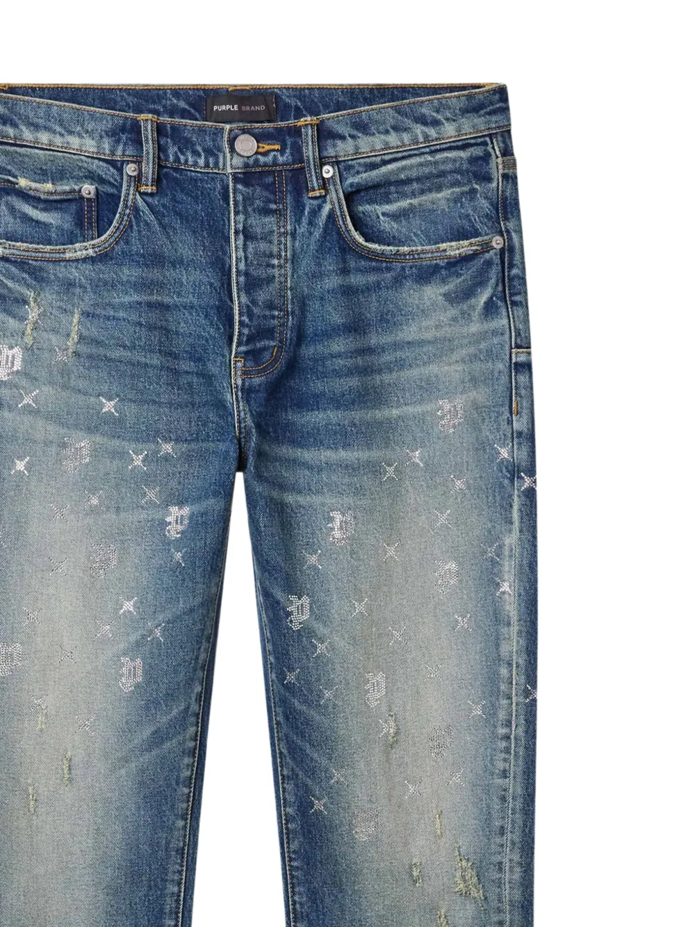 Джинсы P005 Monogram Bling с эффектом потертости Purple Brand, синий 46 879₽