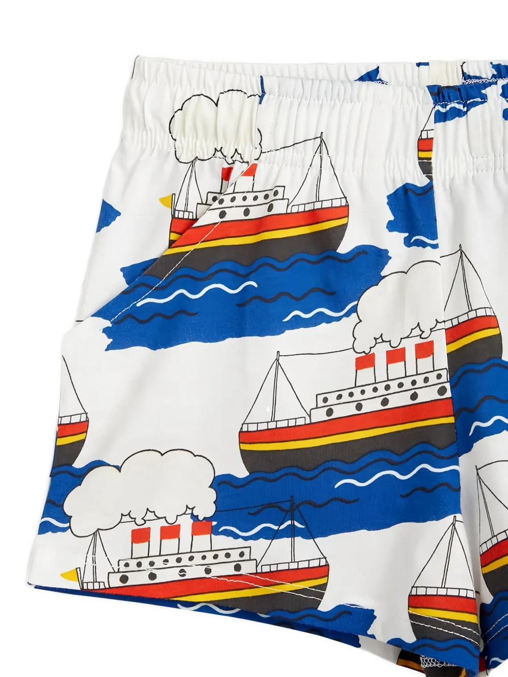 Шорты с принтом кораблей и эластичным поясом Mini Rodini, белый