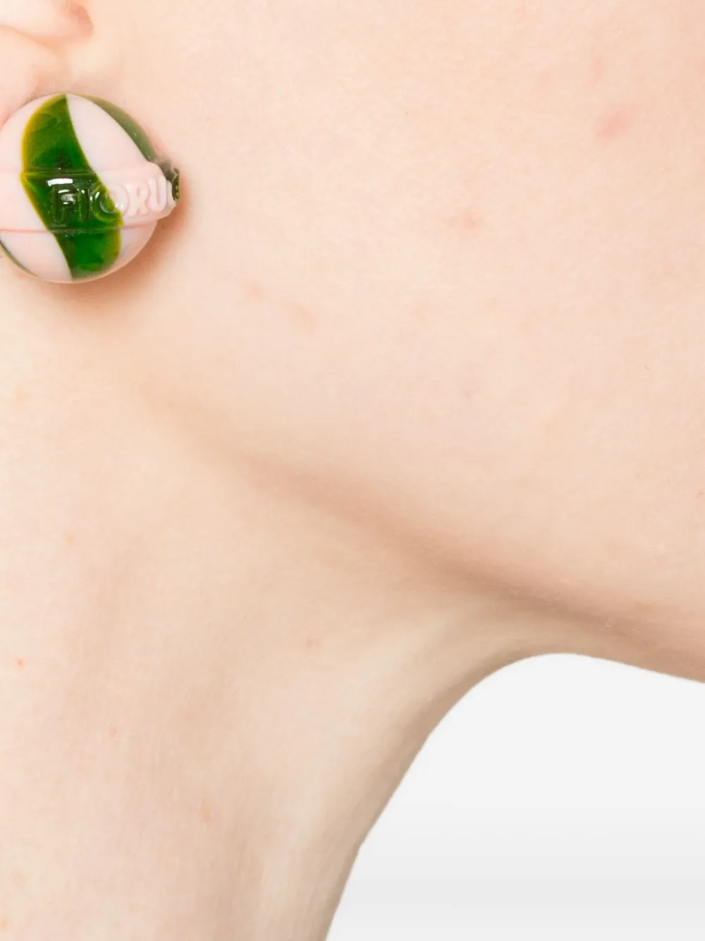 Розово-зеленый узор в виде завихрений застежка-клипса шарообразная форма Это одна серьга.