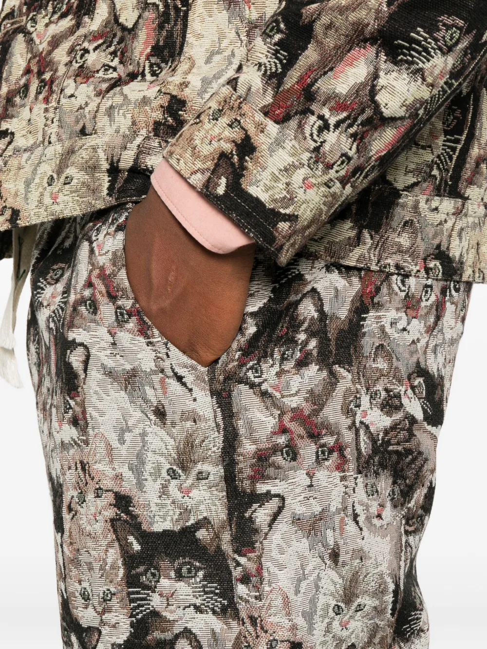 Бежевый с принтом кошек эластичная завязка на шнурке боковые прорезные карманы