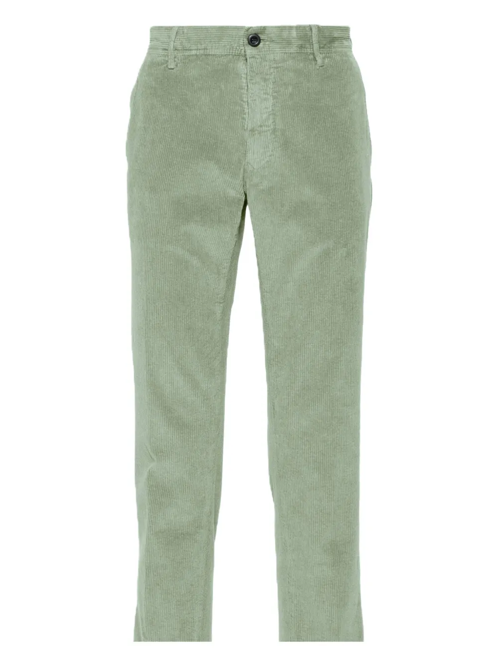 Шалфейно-зеленые вельветовые брюки с пуговицами, передними карманами и прямыми штанинами