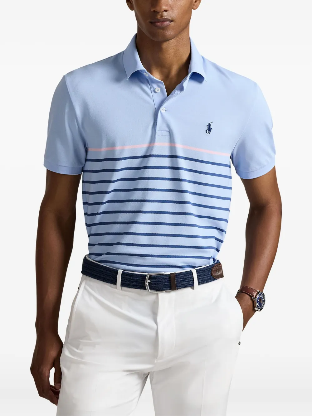 Полосатая рубашка поло из ткани пике RLX Ralph Lauren, синий