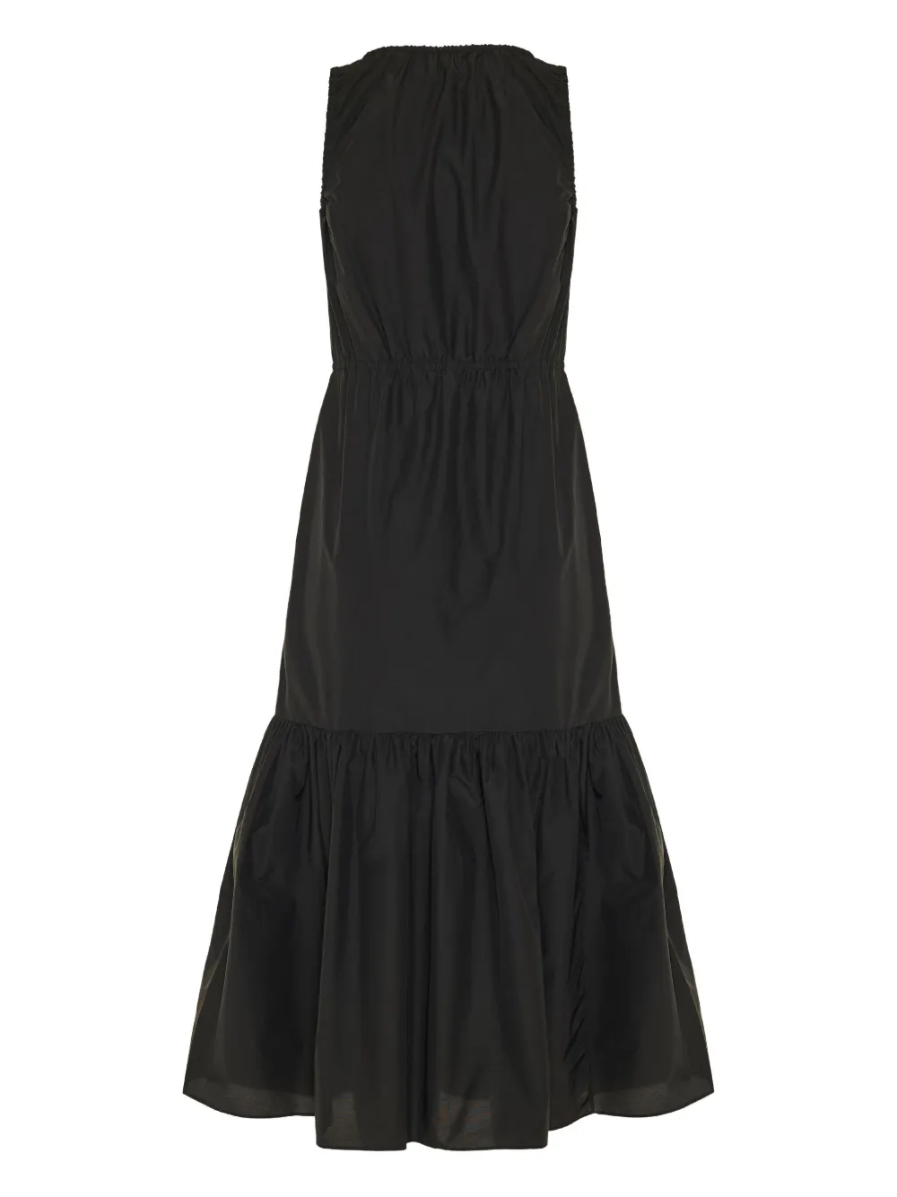 Черный с сборкой на лифе без рукавов круглый вырез многослойная юбка длина миди