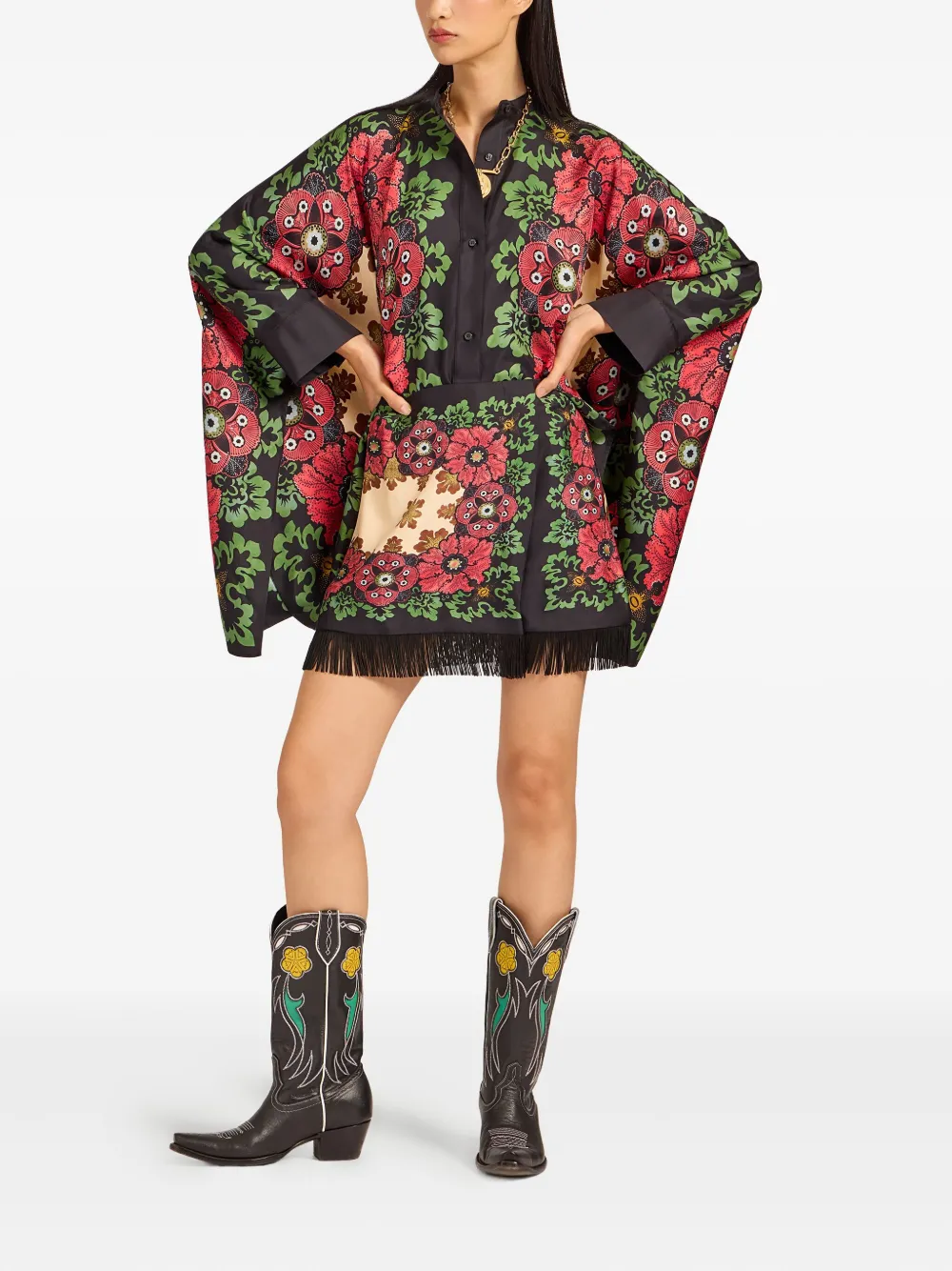 Рубашка с цветочным принтом и бахромой La DoubleJ, черный 66 119₽