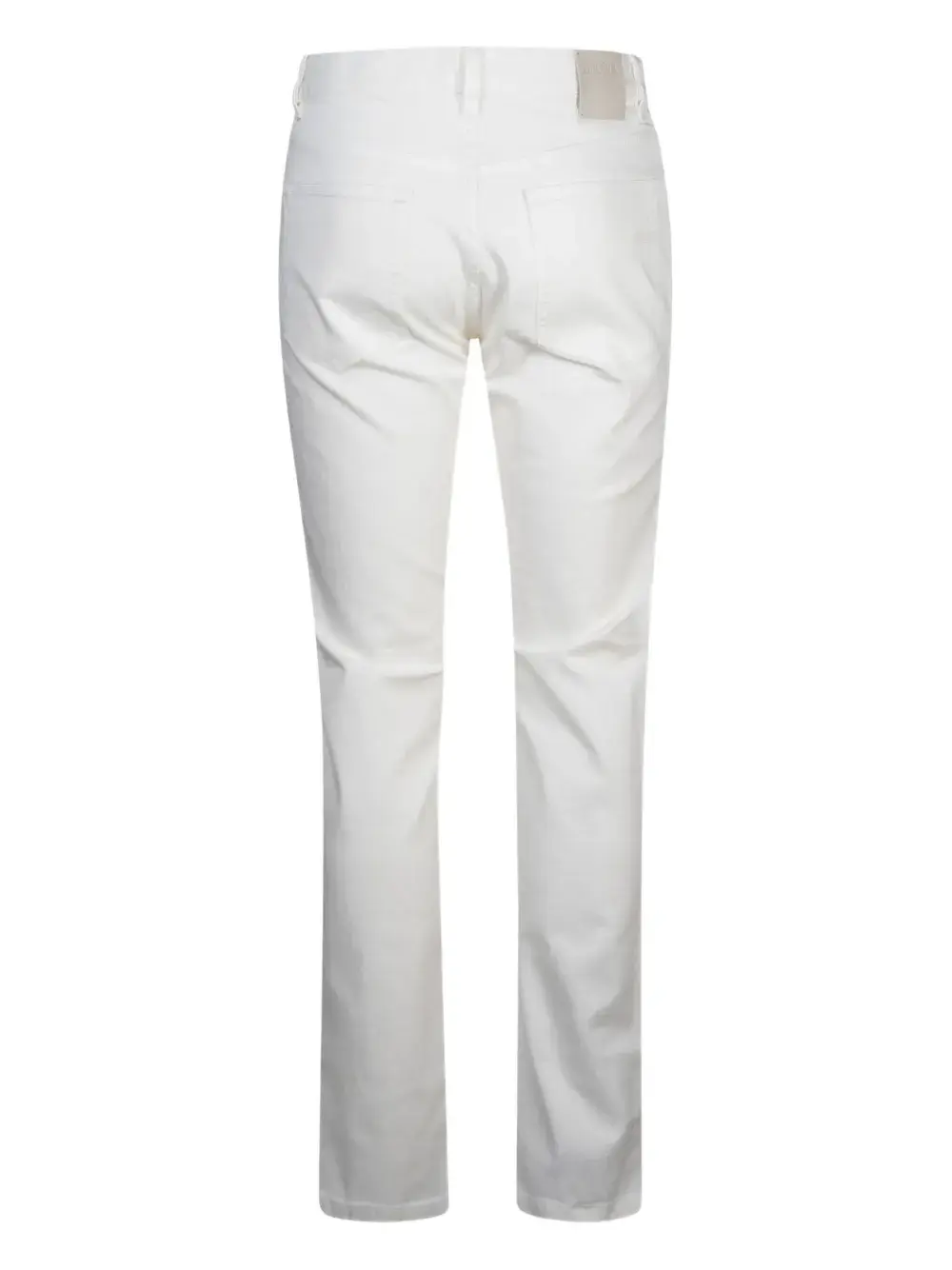 Белый цвет, пять карманов, застежка на пуговицы, шлефки для ремня, прямые брючины, средняя посадка