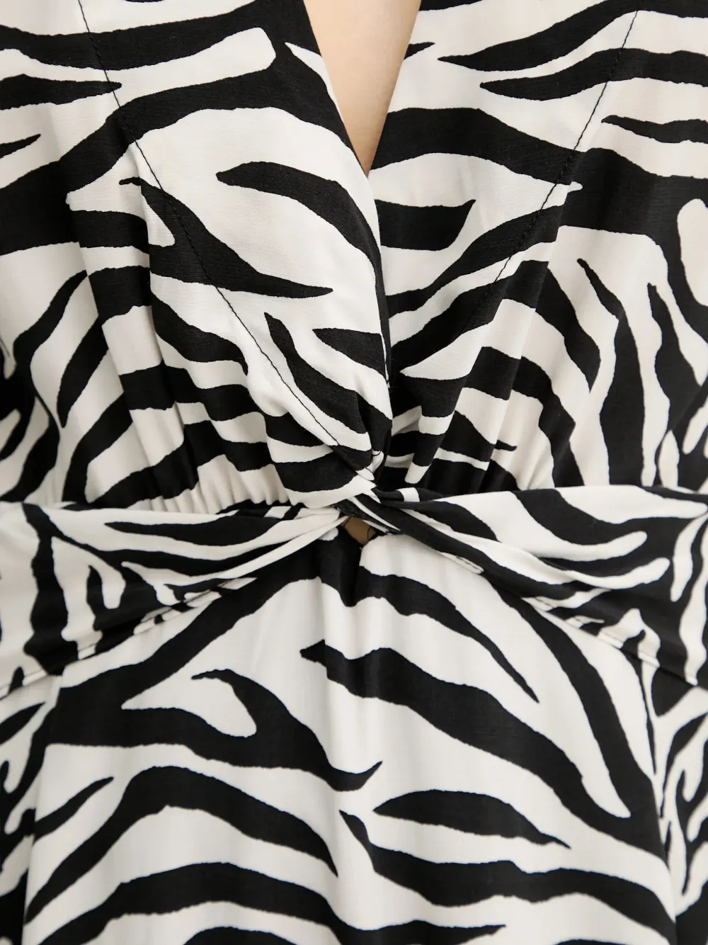 Черно-белый принт зебры, V-образный вырез, длинные рукава, перекрученная деталь спереди