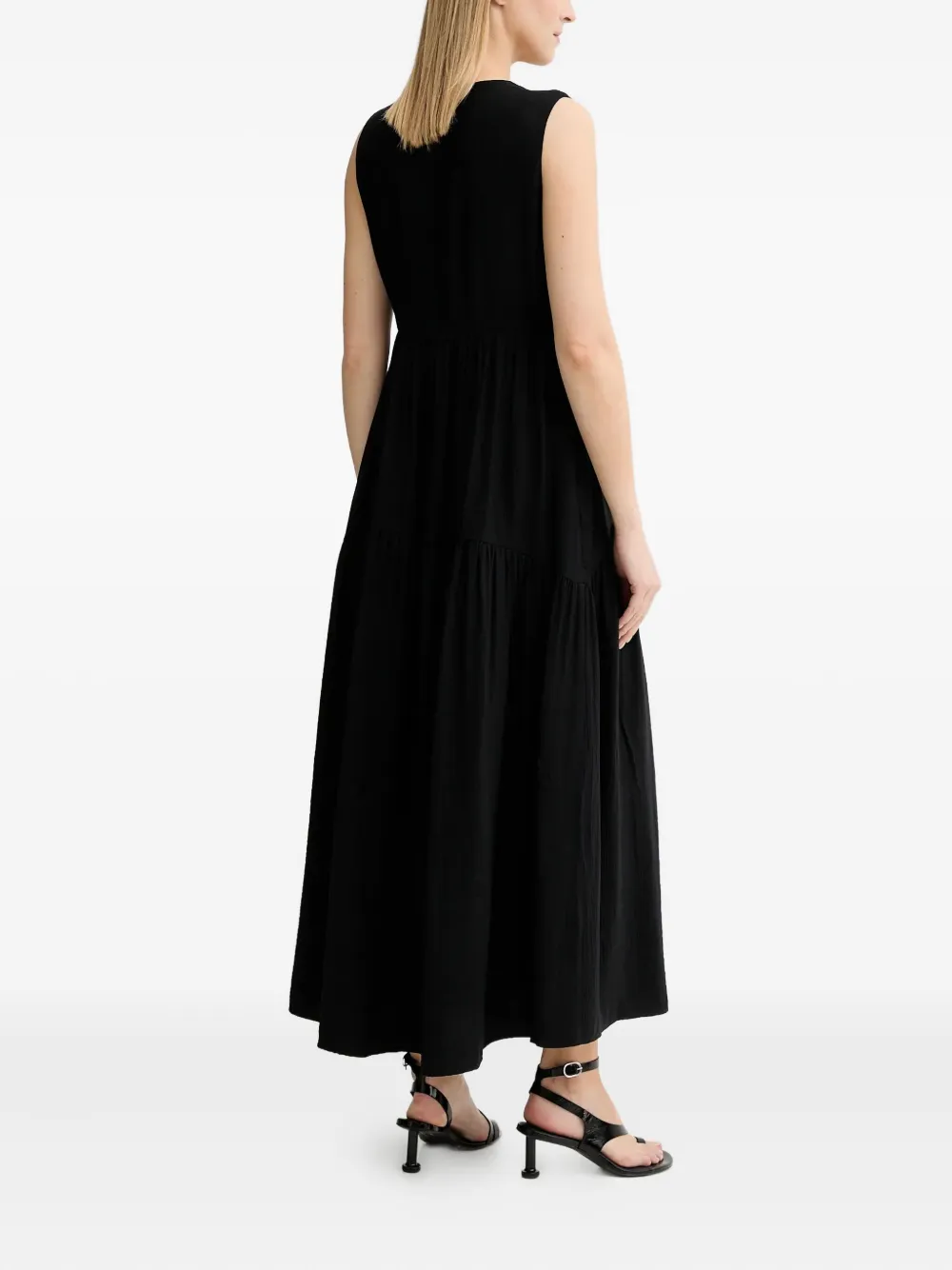 Черное платье с круглым вырезом, многоярусной юбкой и без рукавов