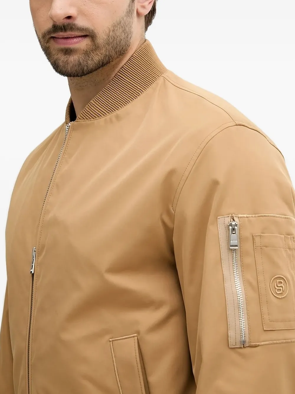 Бомбер с вышитым логотипом BOSS, коричневый