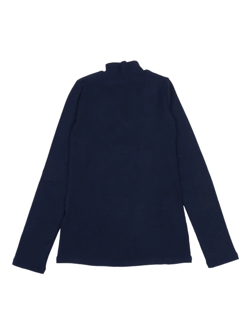 Темно-синий рубчатая текстура водолазка длинные рукава небольшая деталь с логотипом