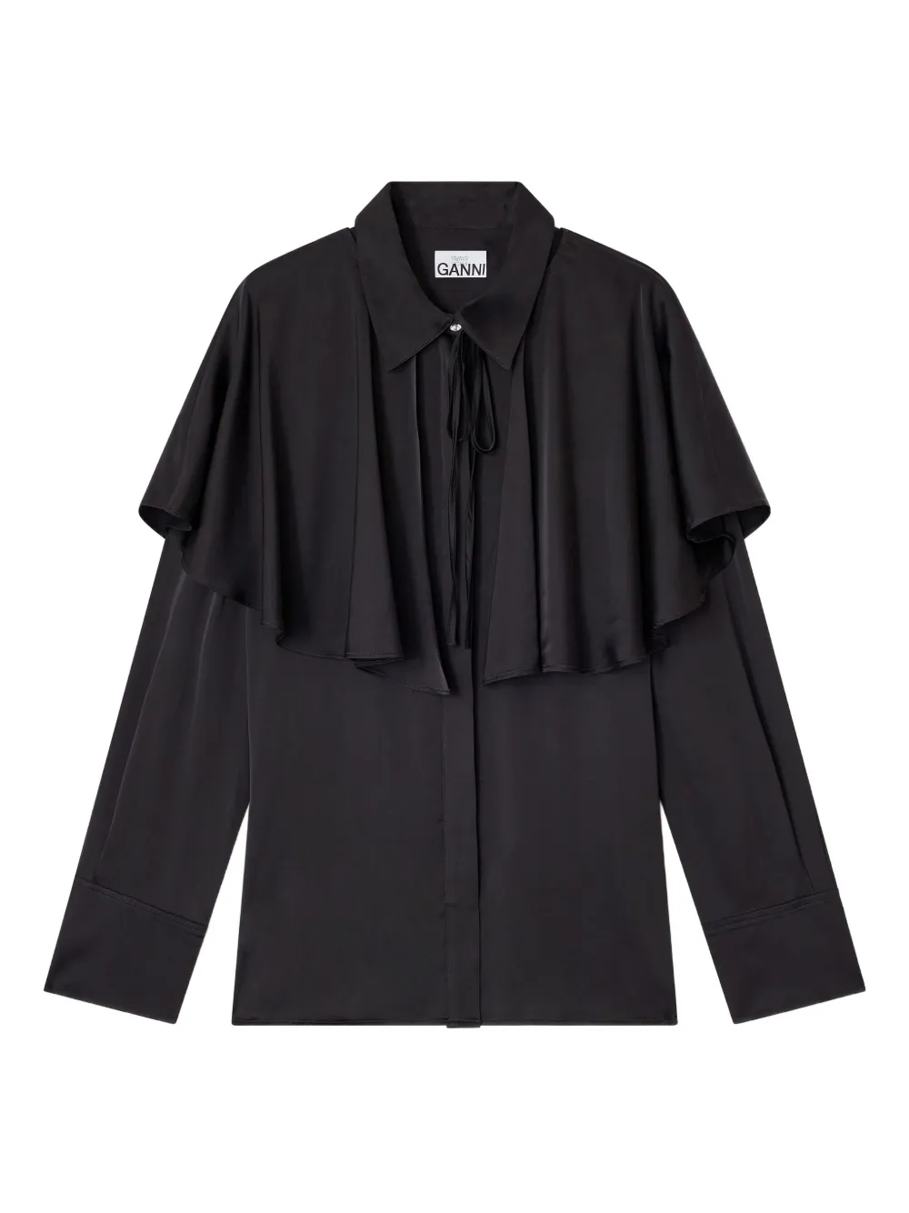 Атласная рубашка с кейпом GANNI, черный 21 239₽