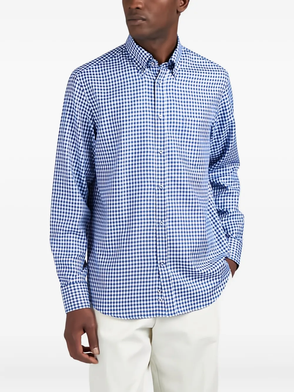 Синий узор в клетку "гингем" застежка на пуговицы длинные рукава нагрудный карман острый воротник