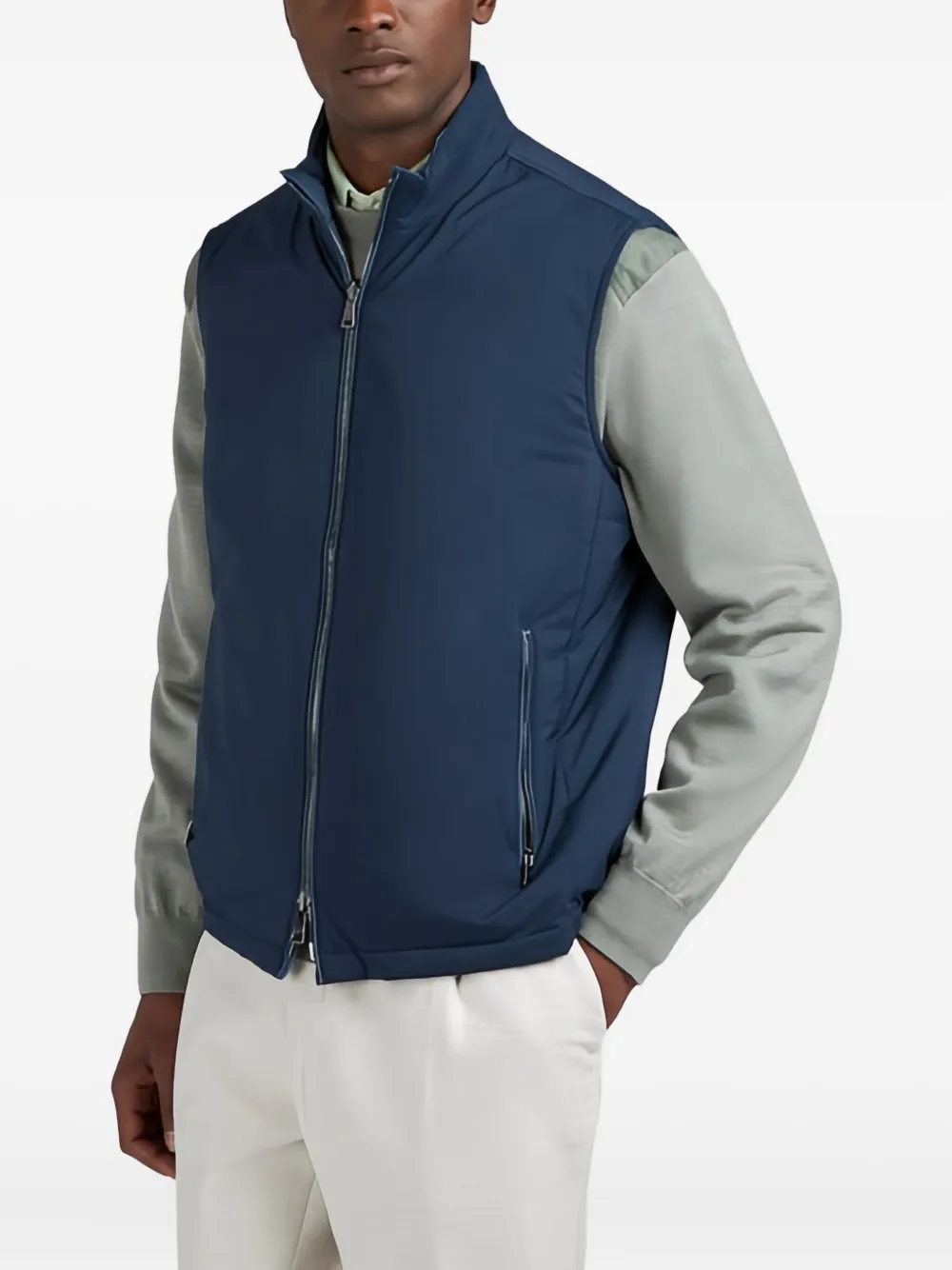 Темно-синий двусторонний дизайн застежка-молния стойка-воротник карманы на молнии без рукавов