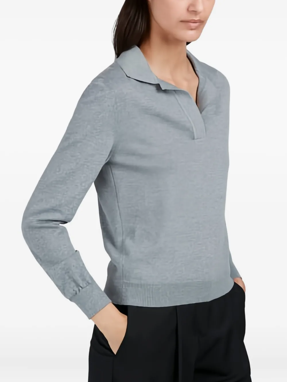 Серый воротник "вингтип" длинные рукава ребристая отделка прямой край вязаная конструкция