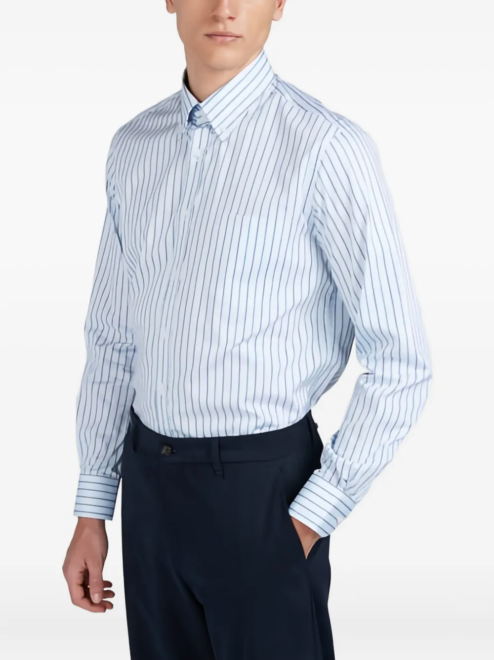 Светло-голубой хлопок полосатые детали застежка на пуговицах спереди длинные рукава застежки на пуговицах на манжетах