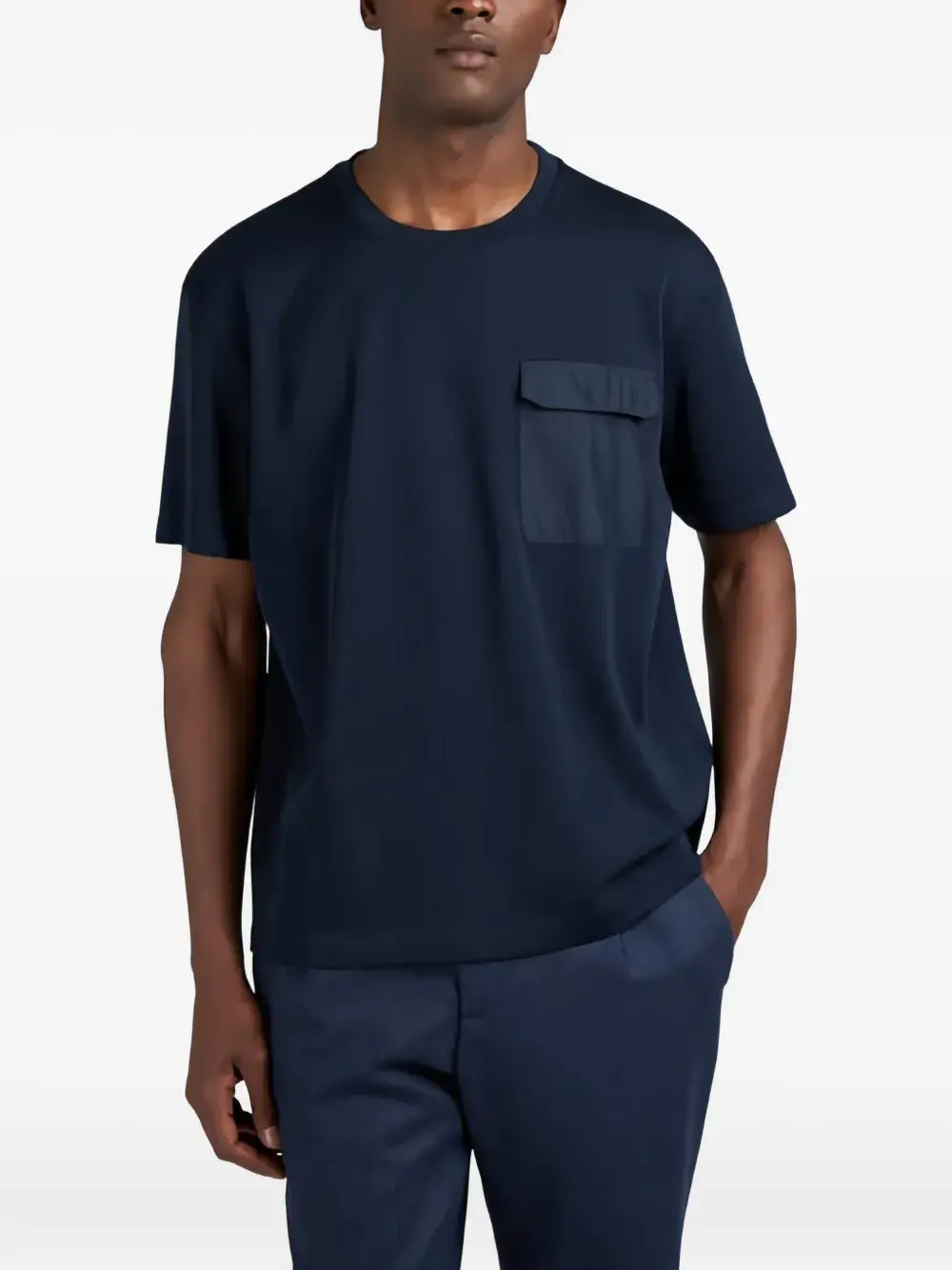Темно-синийсмесь шерстинагрудный карман с клапаномкруглый вырезкороткие рукавапрямой подол