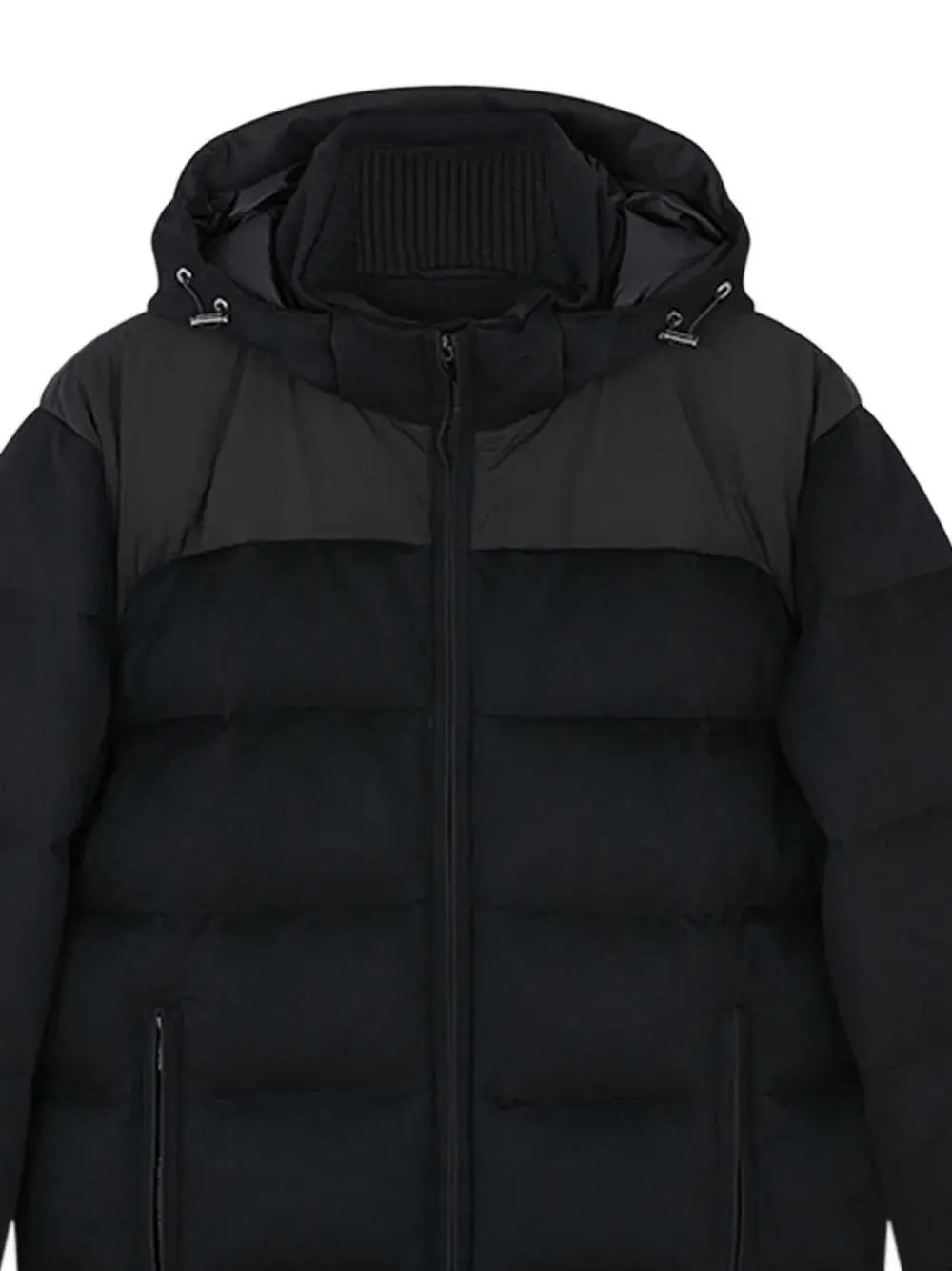 Черная кашемировая ткань стеганый дизайн капюшон застежка-молния многослойный дизайн