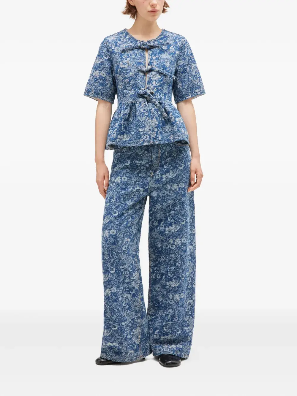 Блузка с бантами и баской GANNI, синий 30 613₽