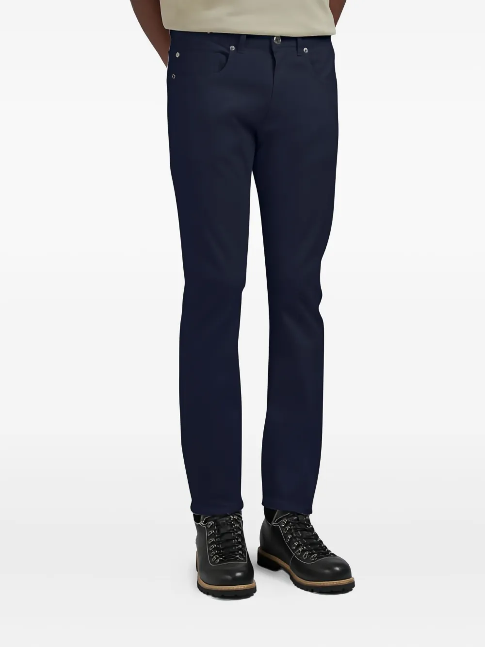 Темно-синий смесь хлопка пять карманов пуговичная ширинка шлевки для ремня