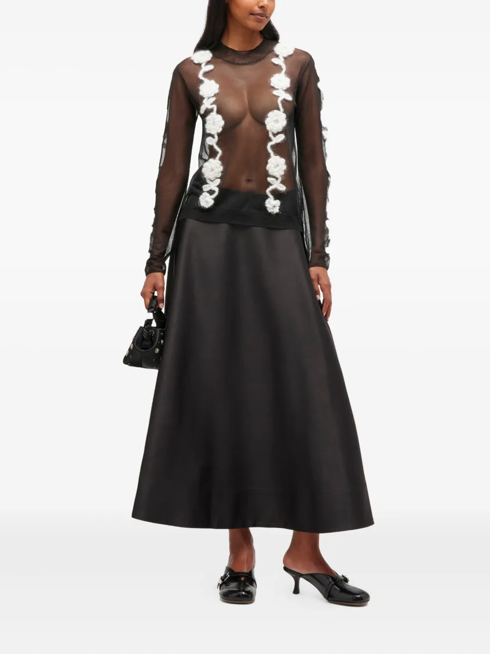 Атласная юбка макси GANNI, черный