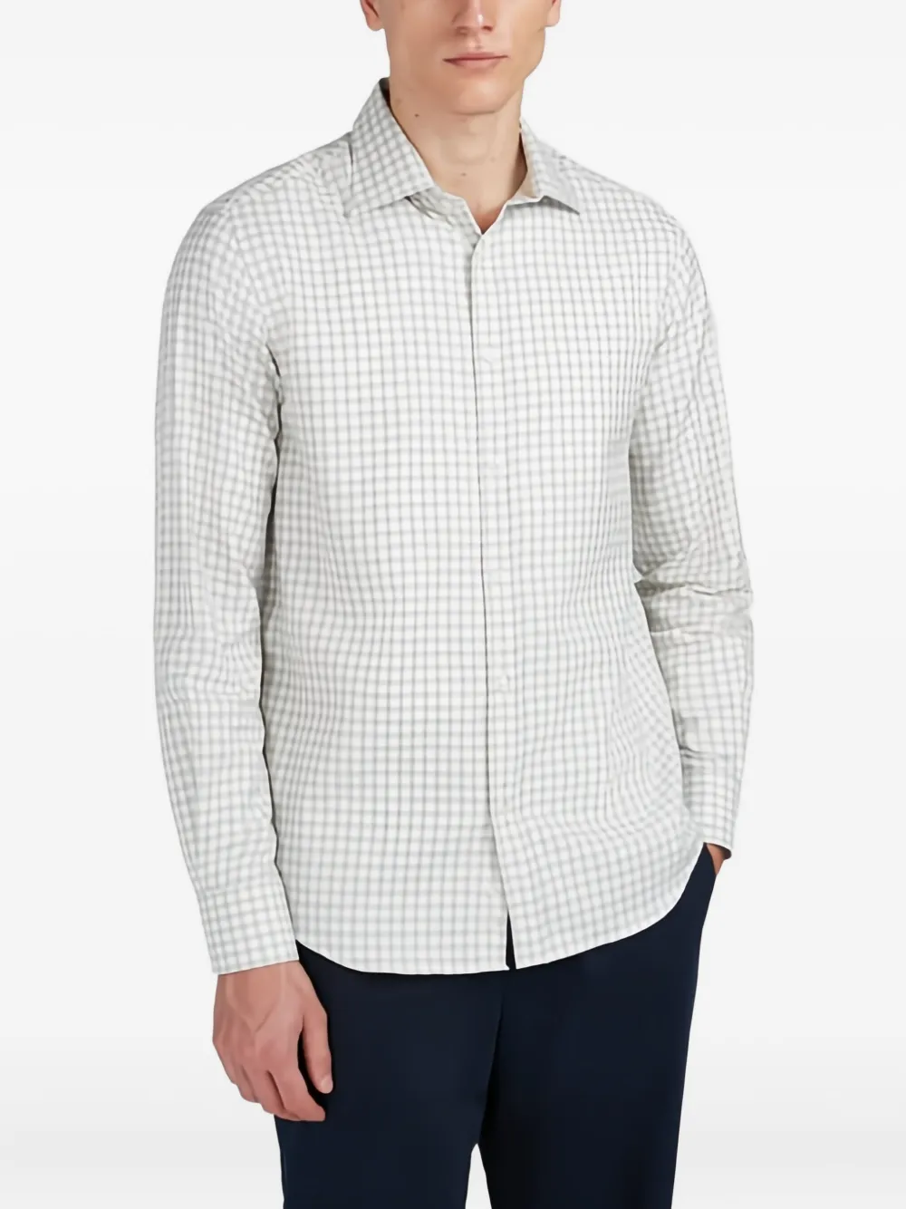 Белый в клетку длинные рукава застежка на пуговицы воротник поло хлопок