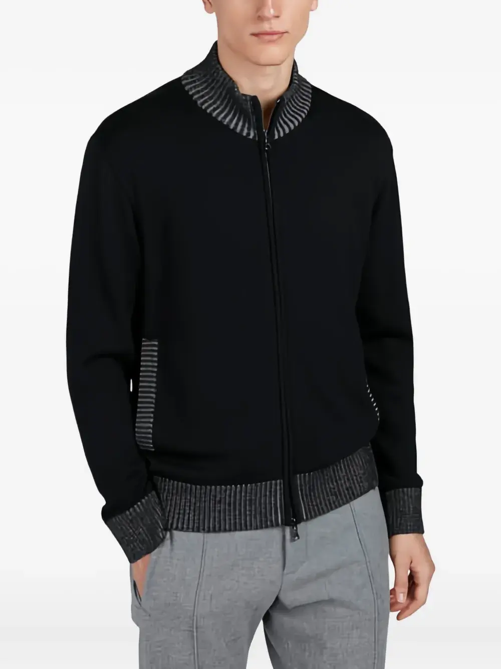 Черный ребристый край ребристые манжеты застежка-молния высокий воротник