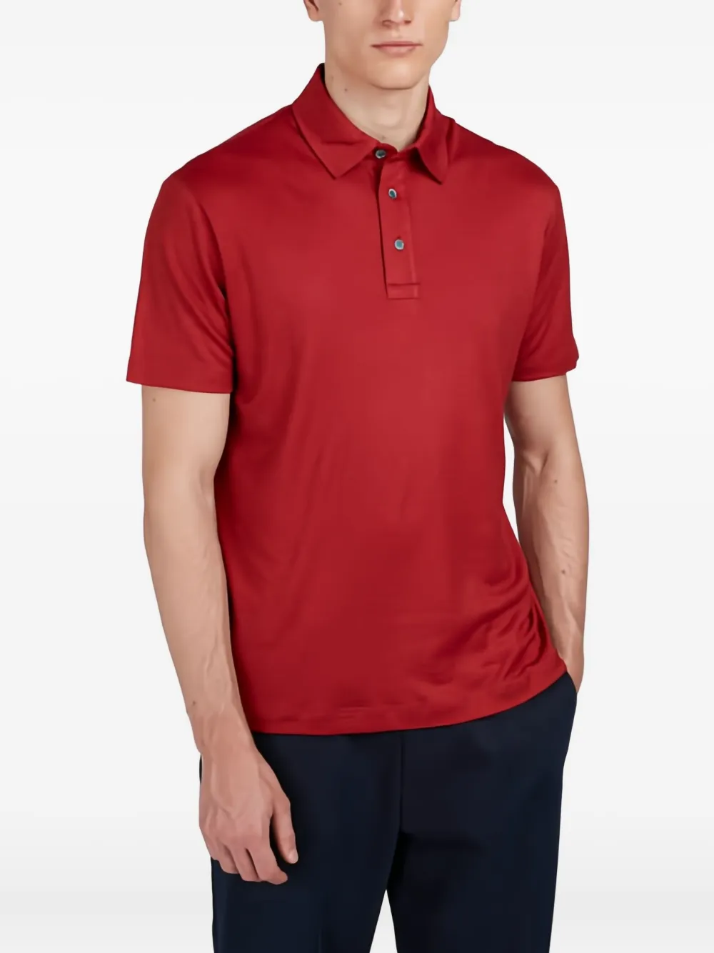 Красная охра короткие рукава застежка на три пуговицы хлопок интерлок воротник поло