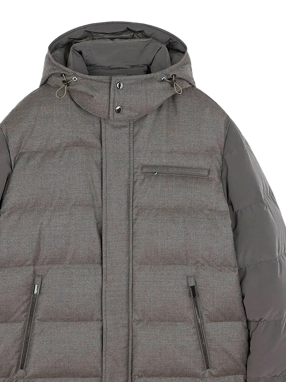 Серый стеганый дизайн капюшон контрастные вставки застежка на молнии боковые карманы