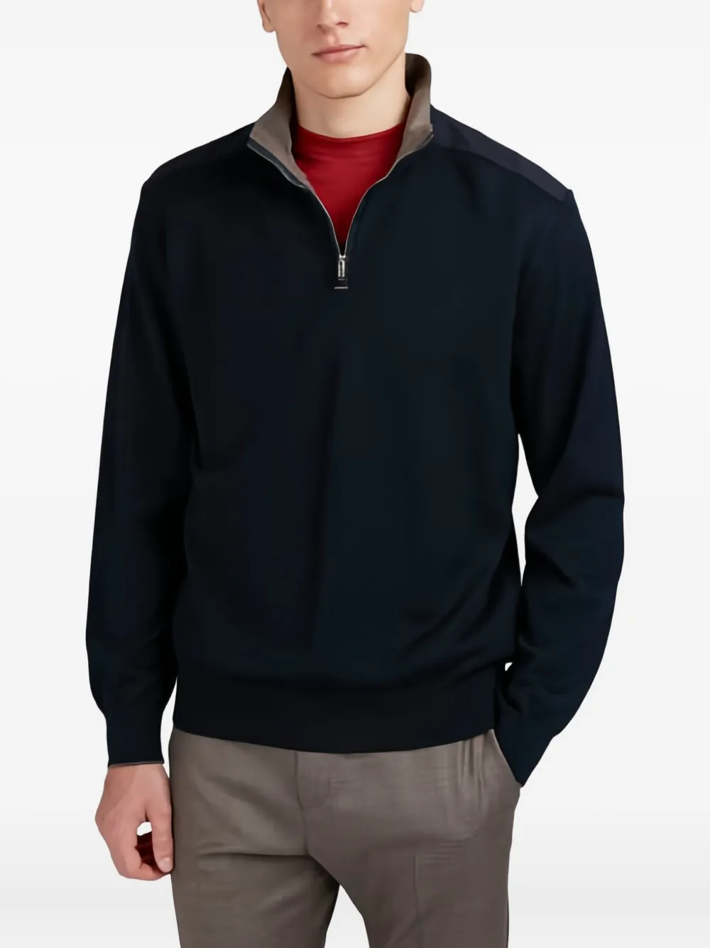 Синий половинная молния шерсть мериноса длинные рукава рубчатый низ рубчатые манжеты