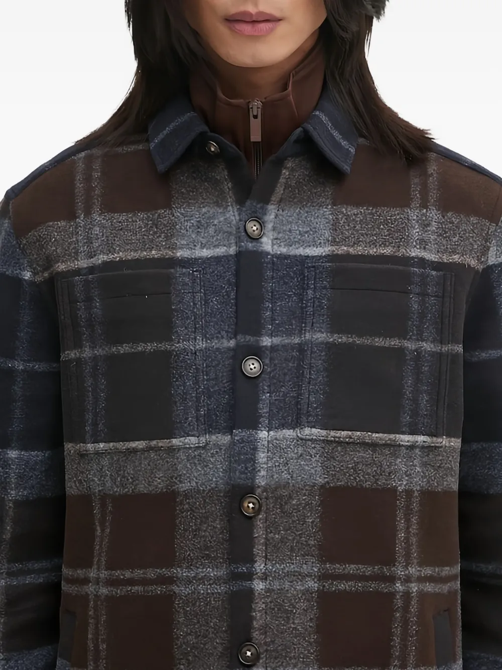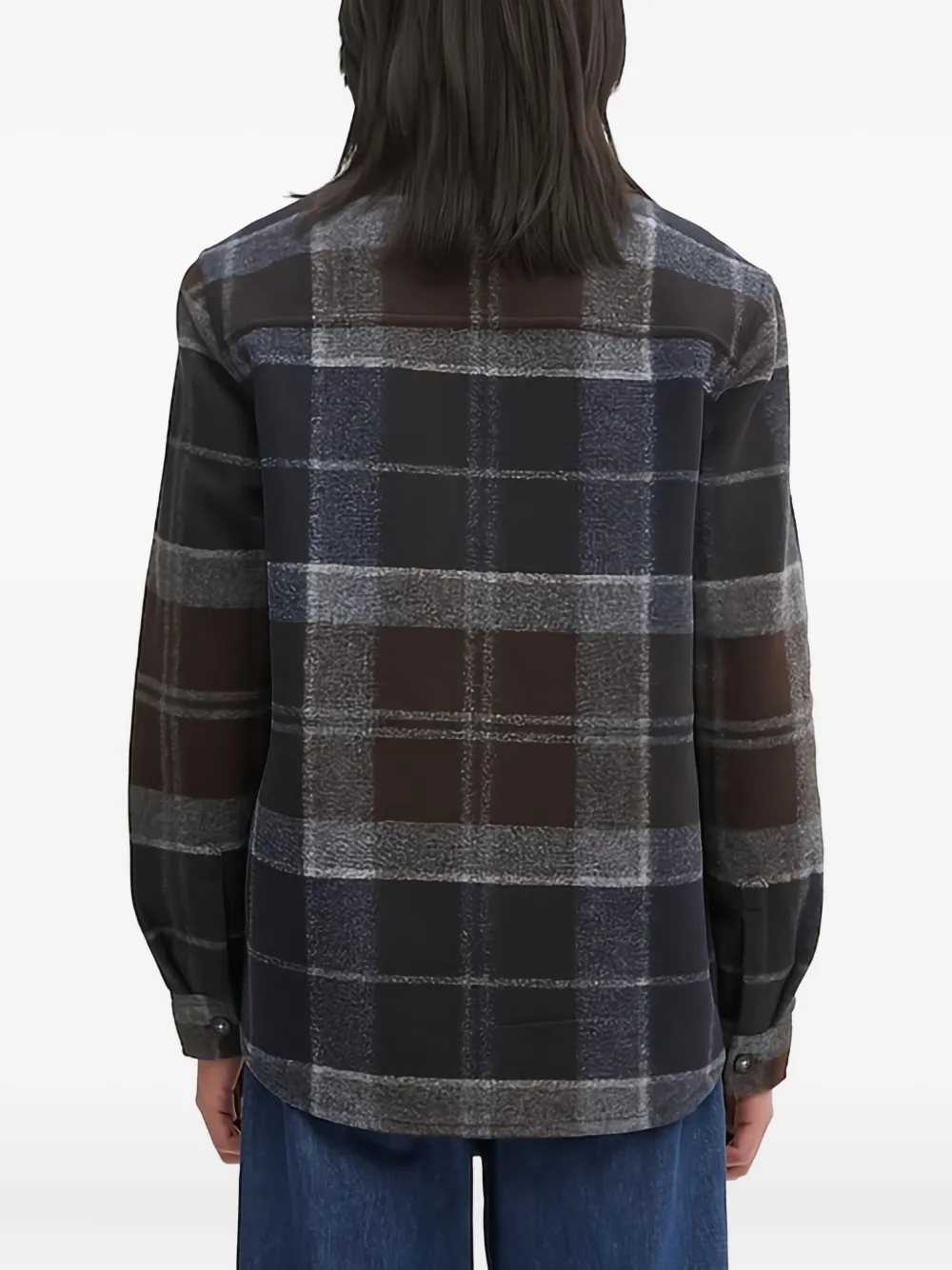 Коричнево-голубой, застежка на пуговицы, нагрудные накладные карманы, крупный клетчатый узор, длинные рукава
