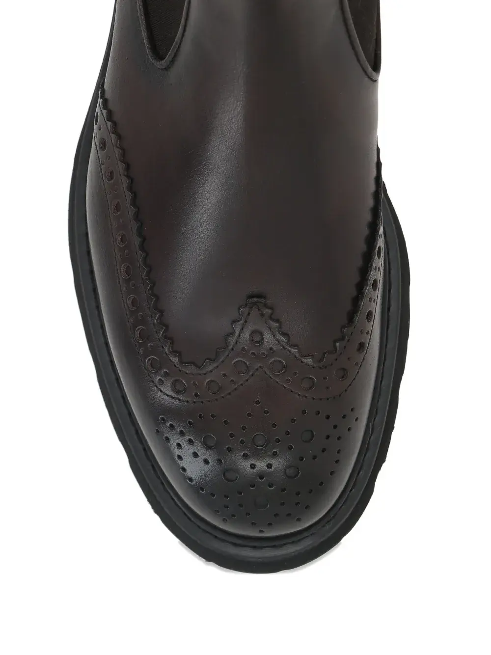 Верх из коричневой телячьей кожи, эластичные боковые вставки, перфорированные детали, резиновая подошва, круглый носок