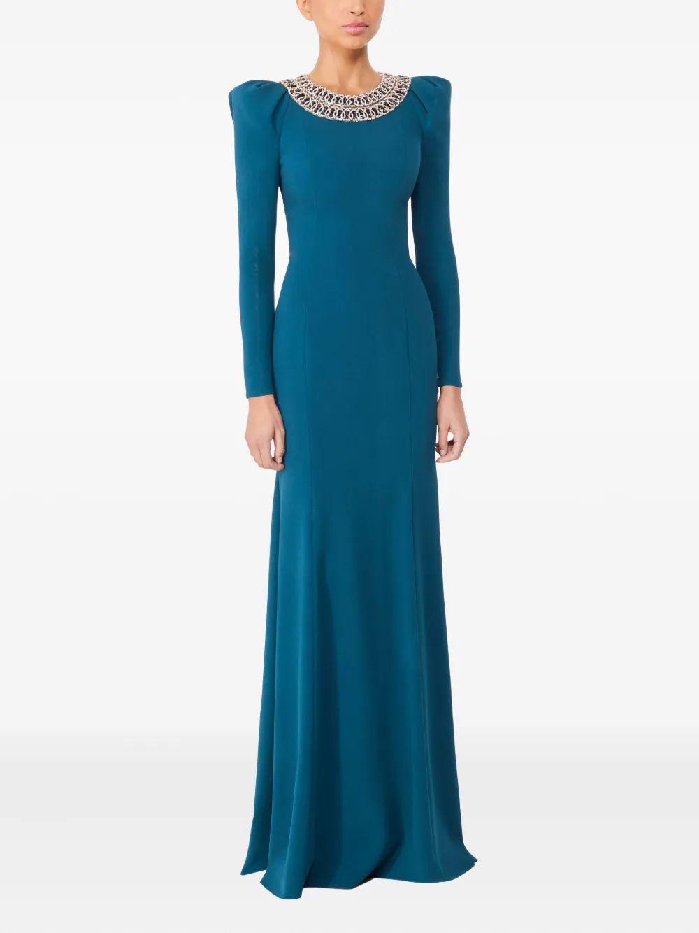 Декорированное платье макси с объемными плечами Jenny Packham, синий