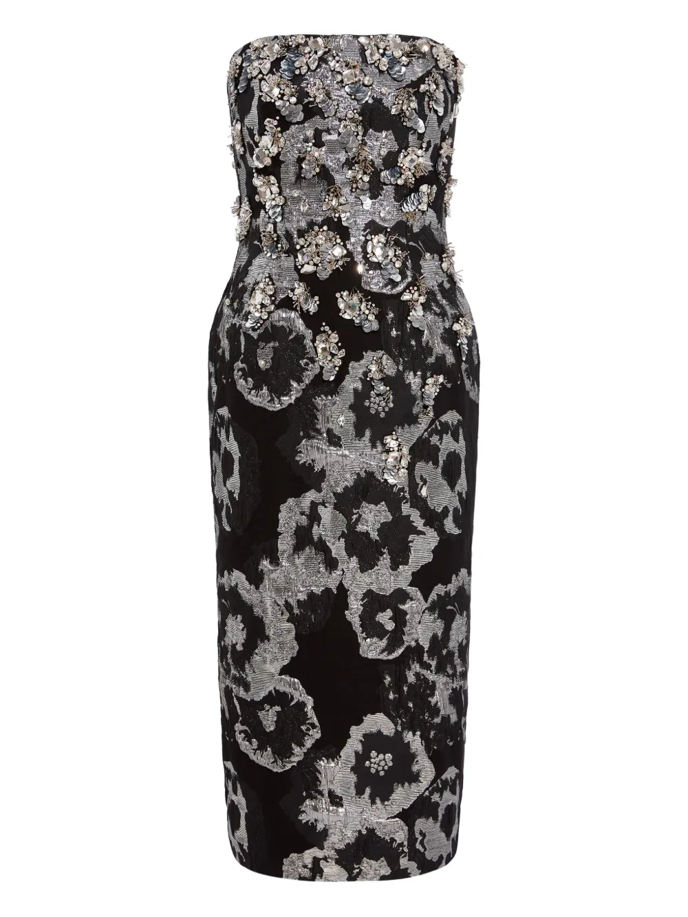 Декорированное платье миди с цветочным принтом Jenny Packham, черный