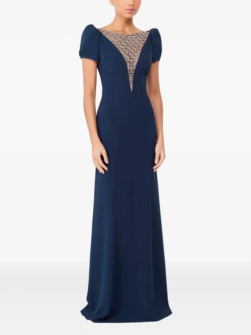 Платье макси с объемными рукавами и кристаллами Jenny Packham, синий