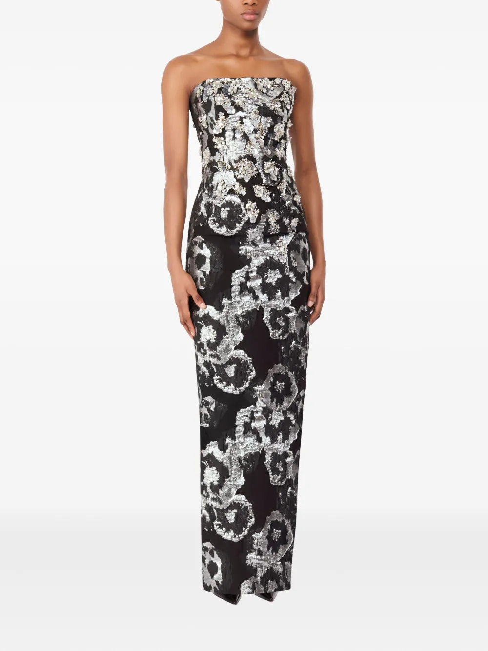 Макси-платье с цветочным жаккардом Jenny Packham, черный