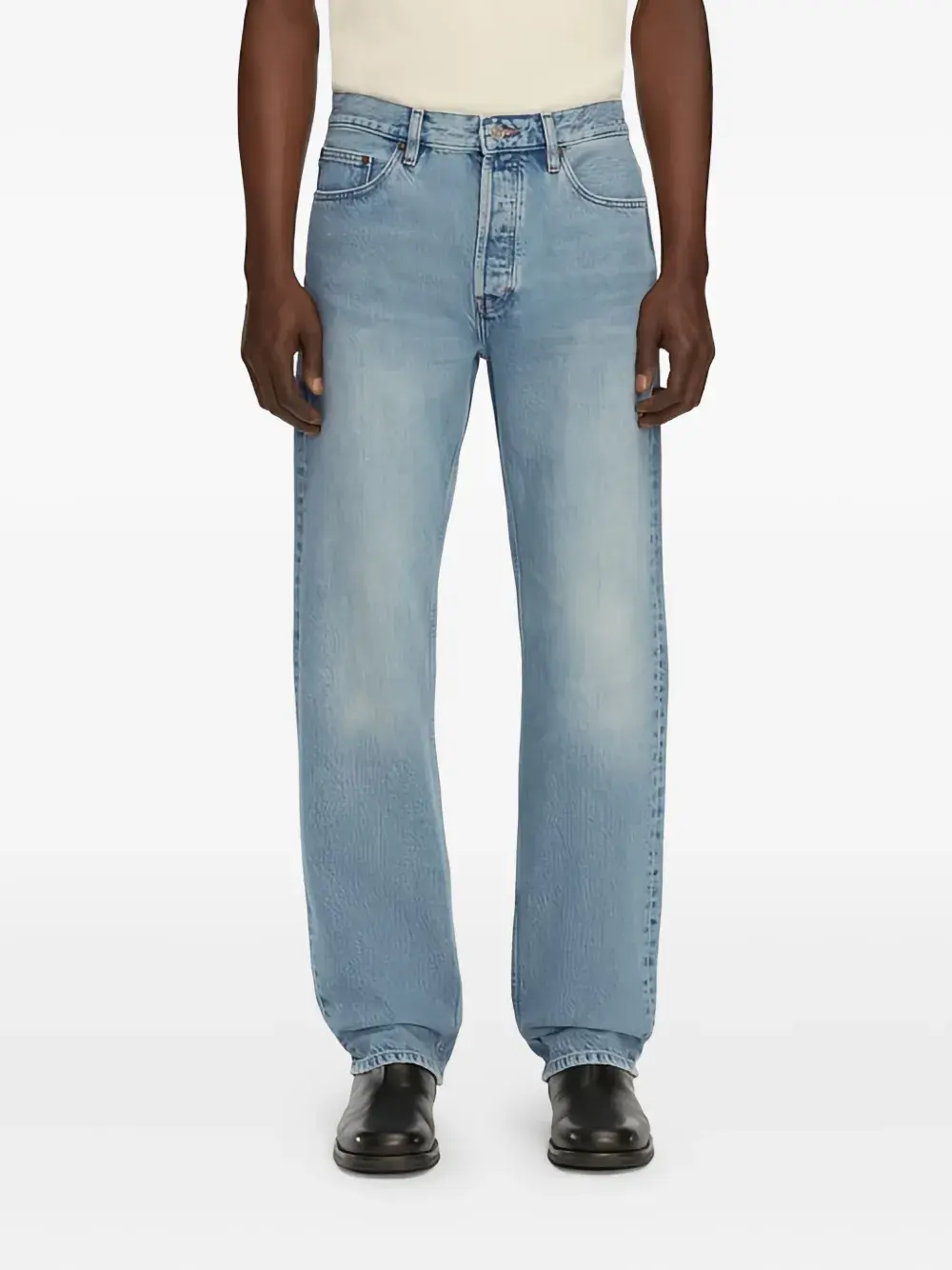 Светло-голубые джинсы с застежкой на пуговицах и пятью карманами