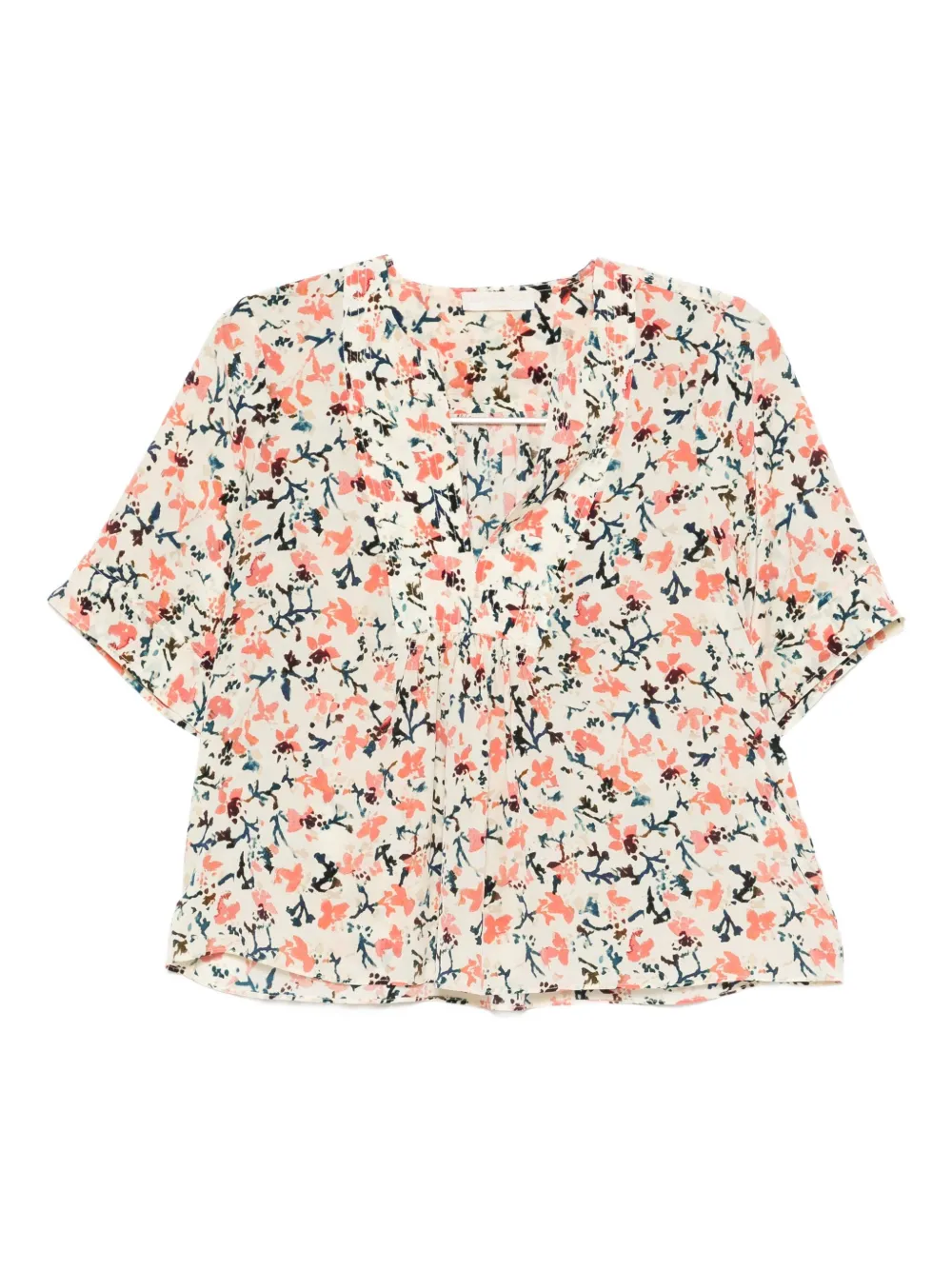 Молочно-белый V-образный вырез короткие рукава сборки цветочный принт