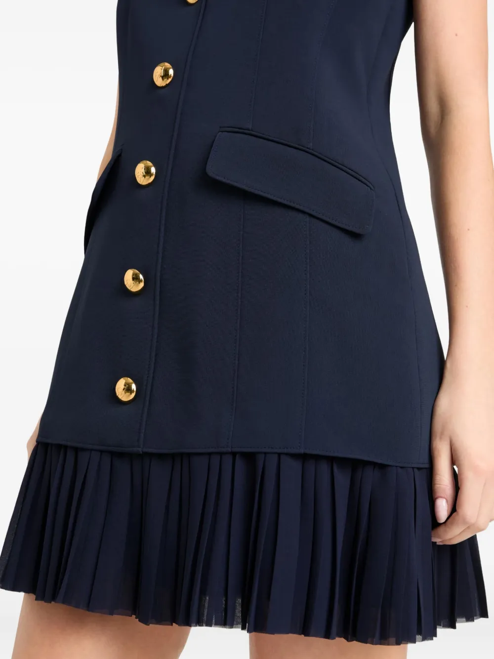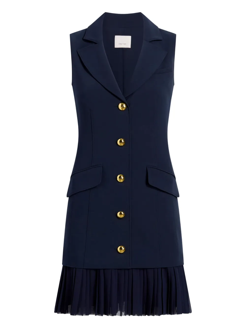 Синий без рукавов острые лацканы оборчатый подол застежка на пуговицы пуговицы с золотистым покрытием