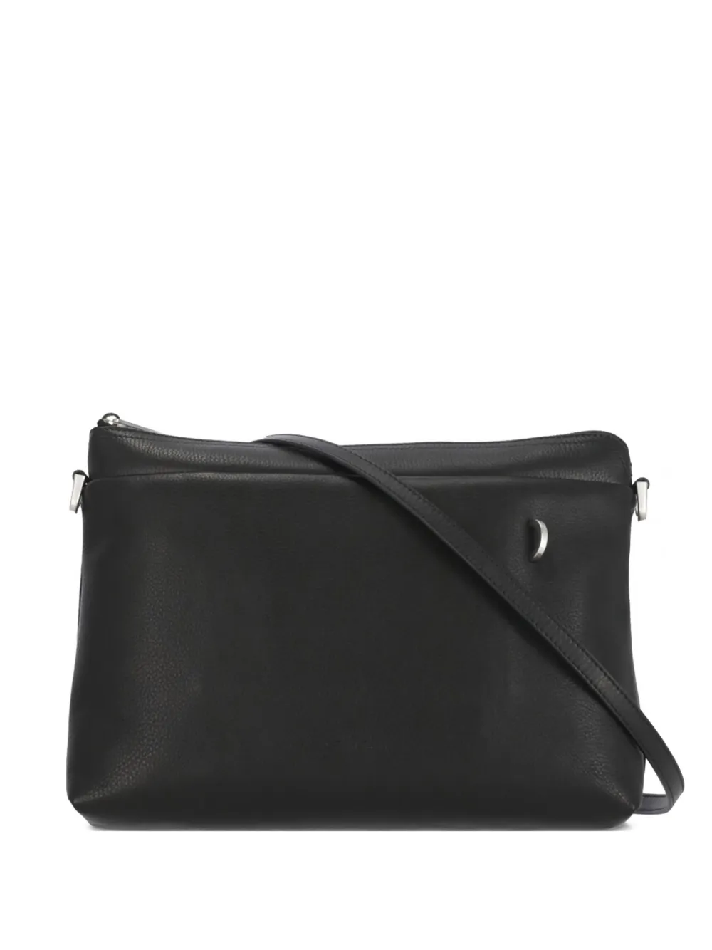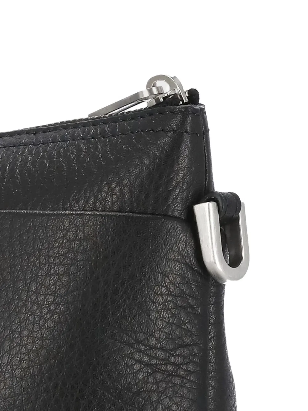Черная телячья кожа, застежка-молния, съемный плечевой ремень, фурнитура цвета серебра, один карман
