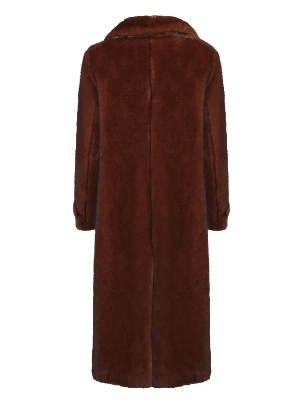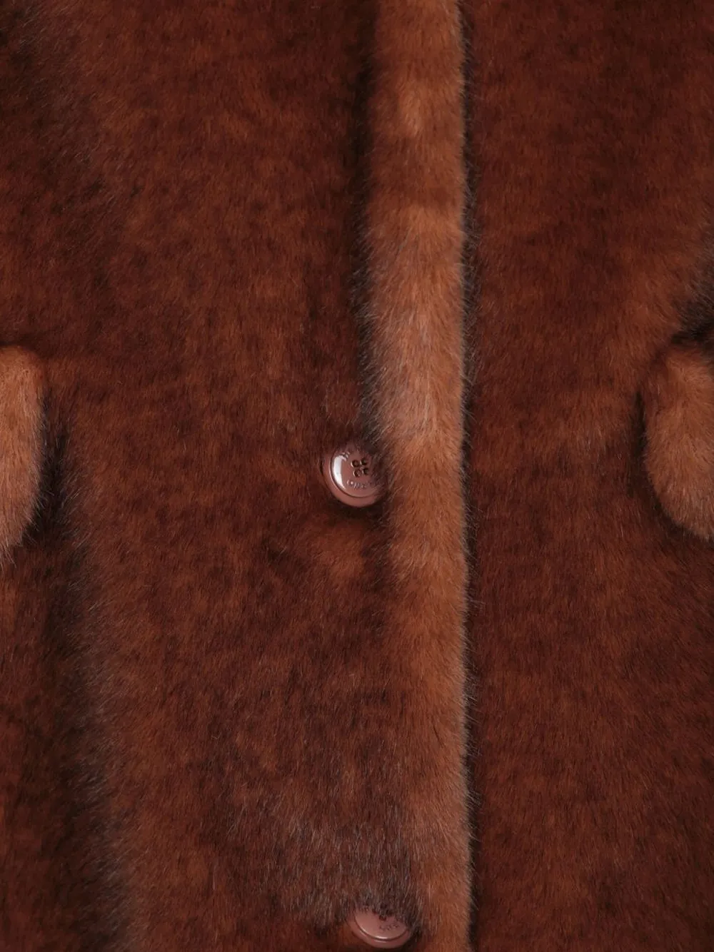 Коричневый искусственный мех застежка на пуговицы накладные карманы спереди с клапанами длинные рукава лацканы с вырезом
