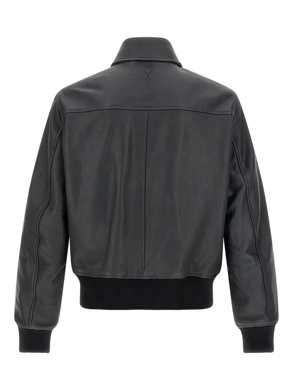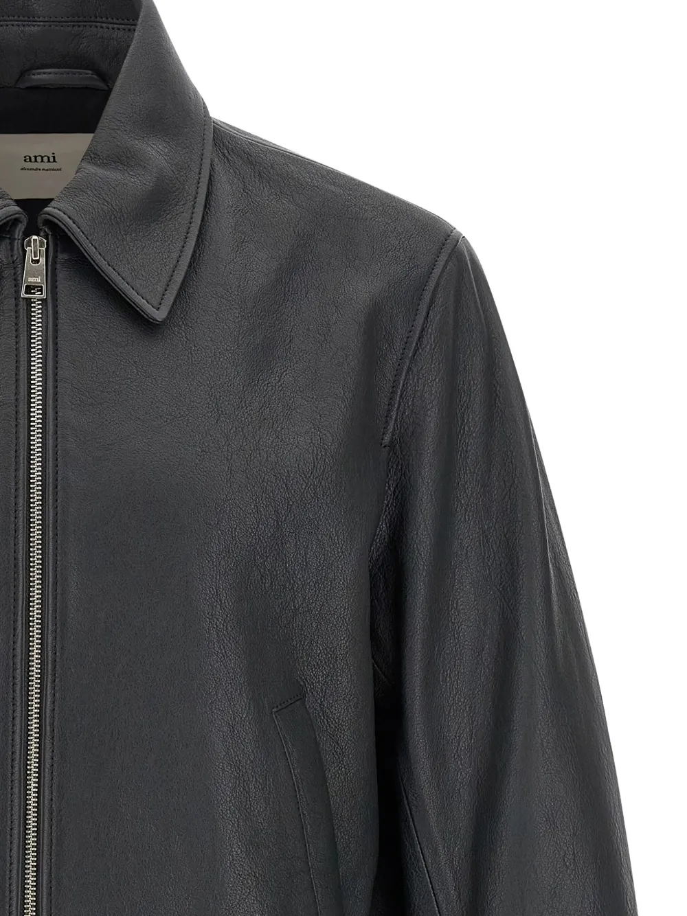 Кожаная куртка на молнии AMI Paris, серый 167 800₽