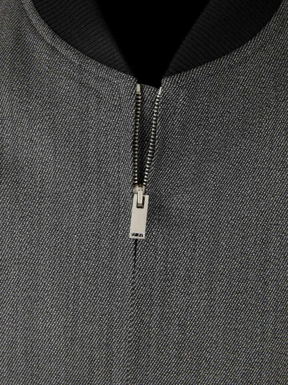 Темно-серый цвет, застежка-молния, рубчатые манжеты и пояс, прорезные карманы