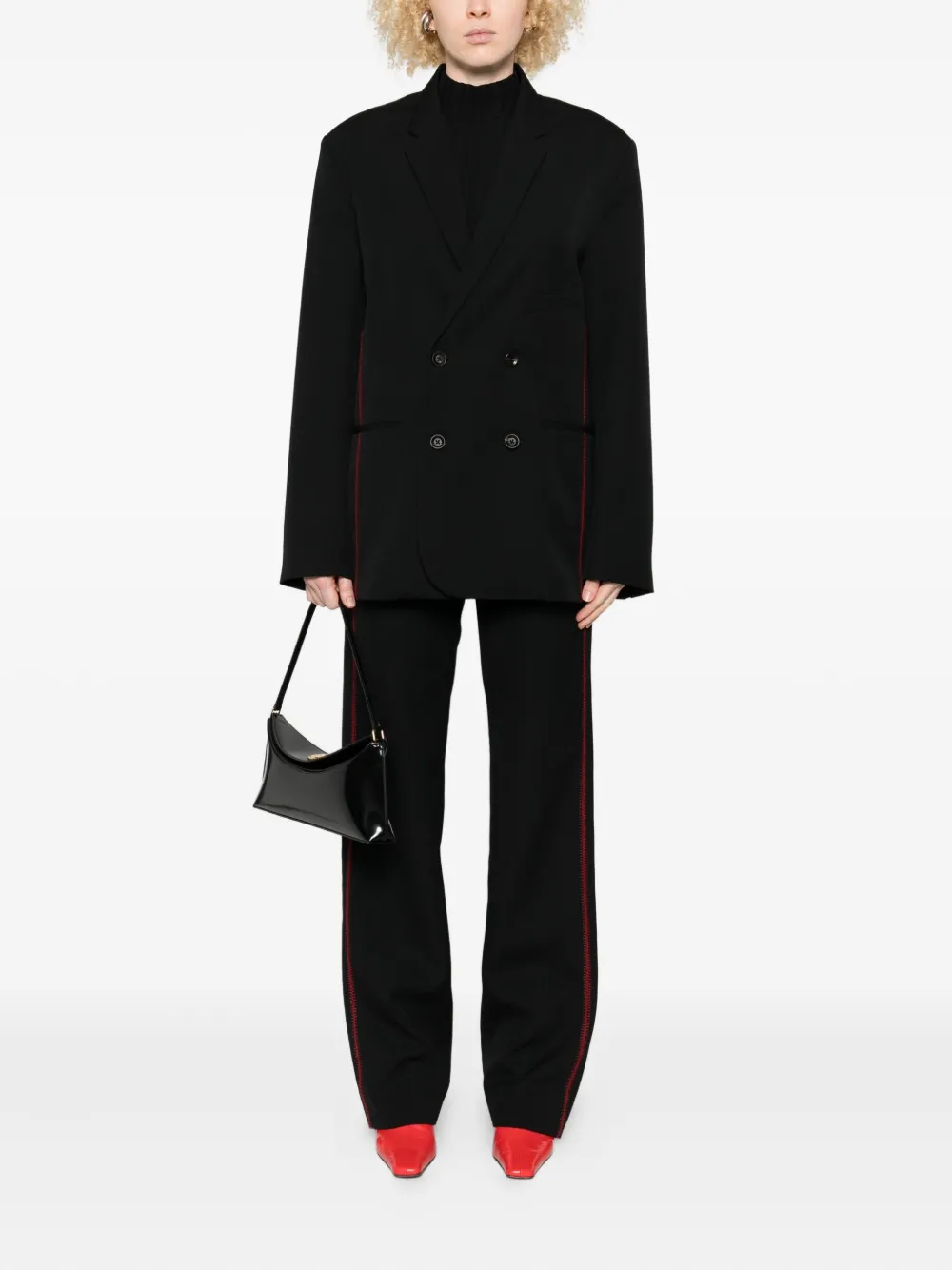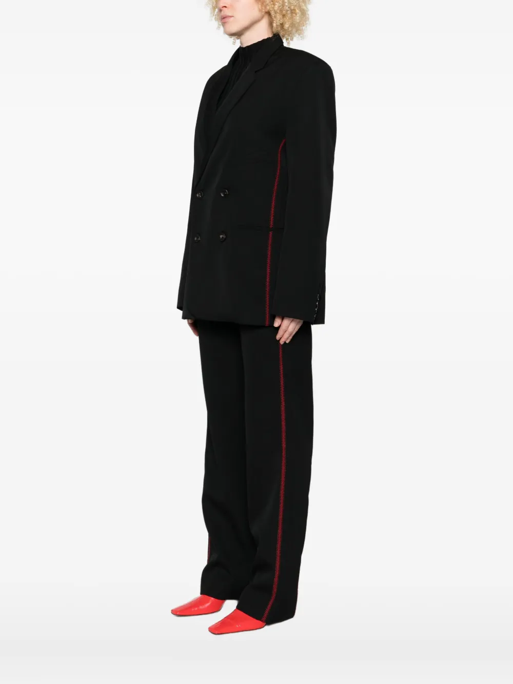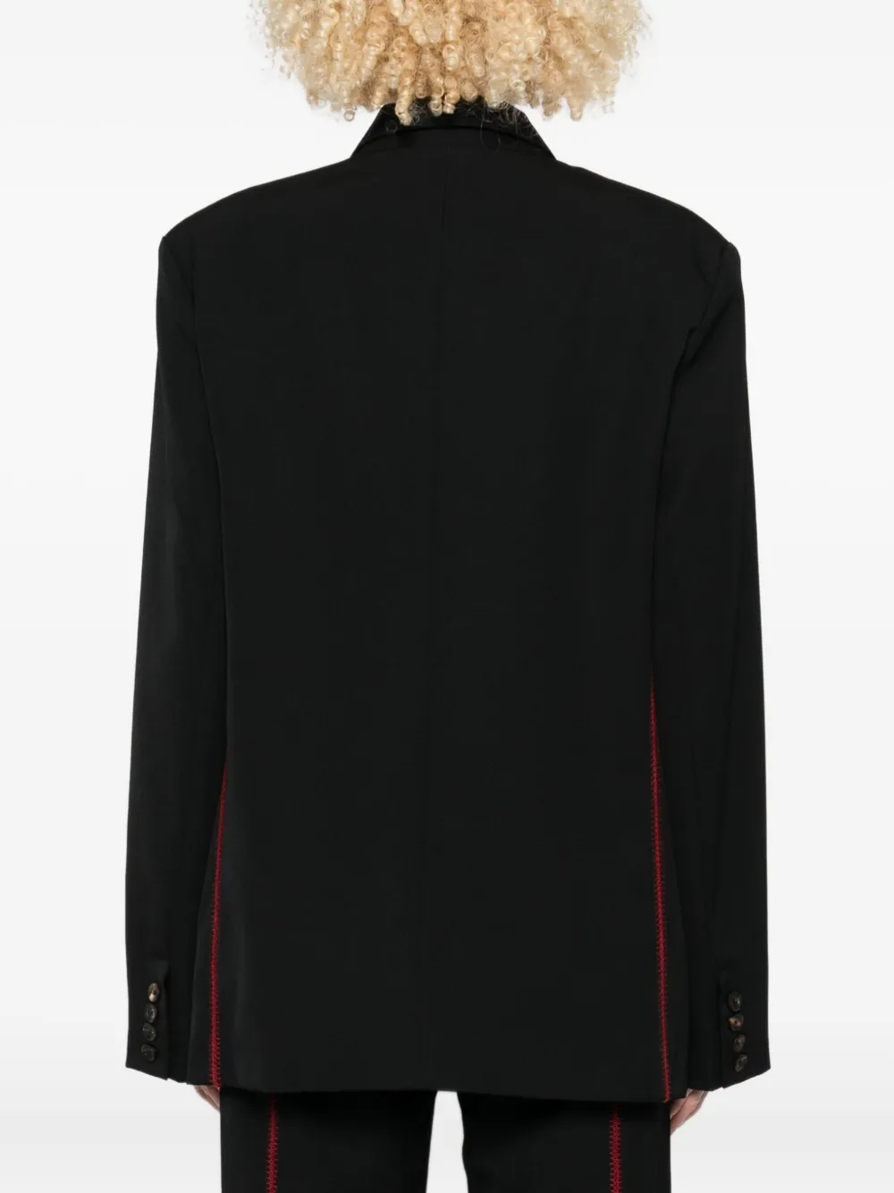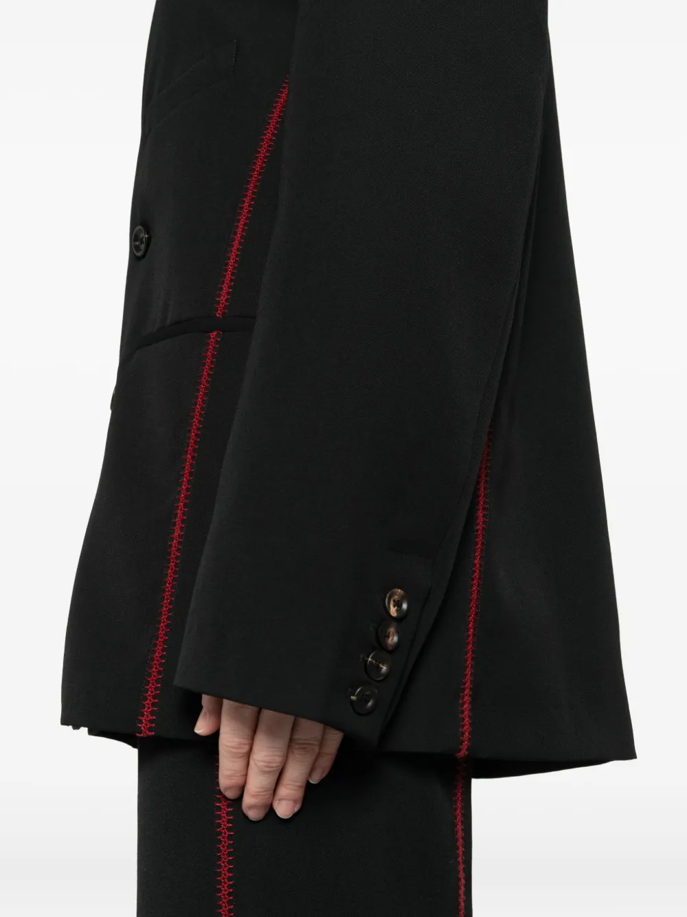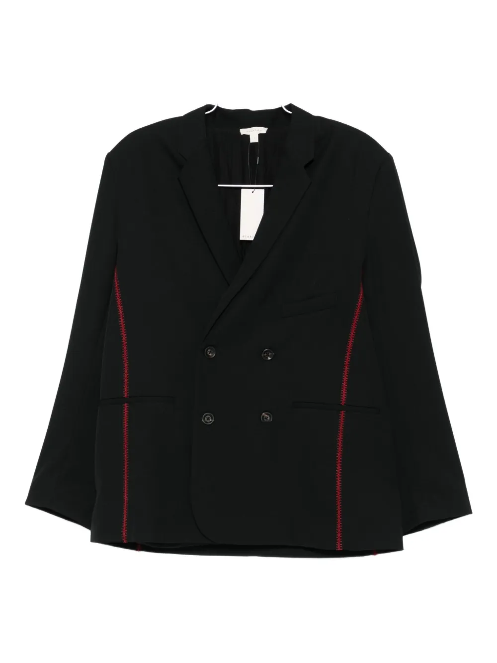 Черный красная строчка двубортный застежка на пуговицы длинные рукава прорезные карманы