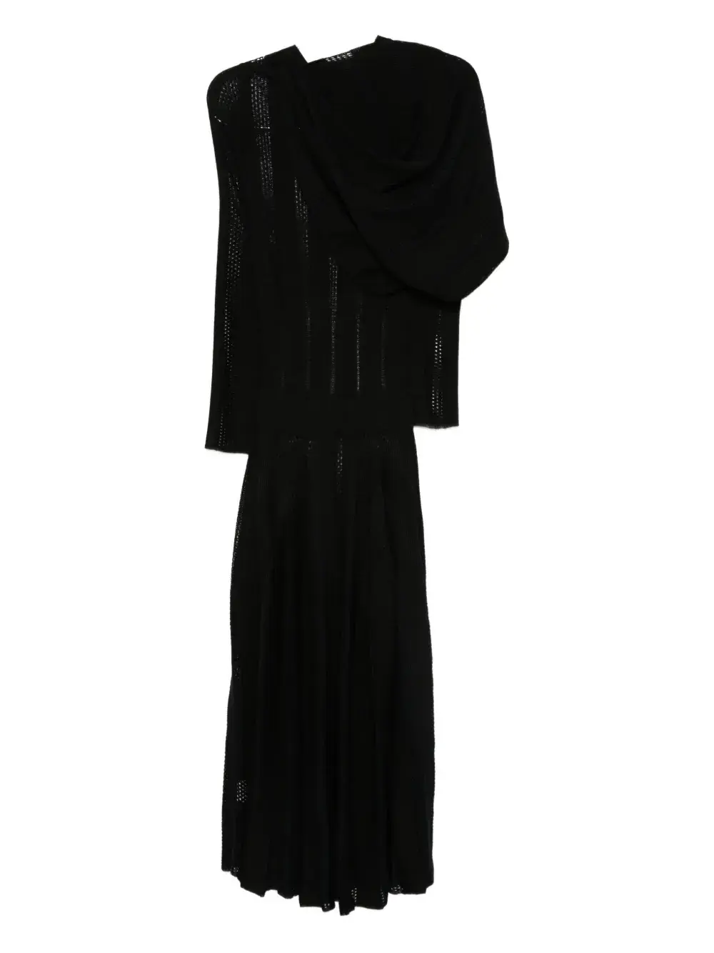 Черный v-образный вырез длинные рукава плиссированная юбка длина миди