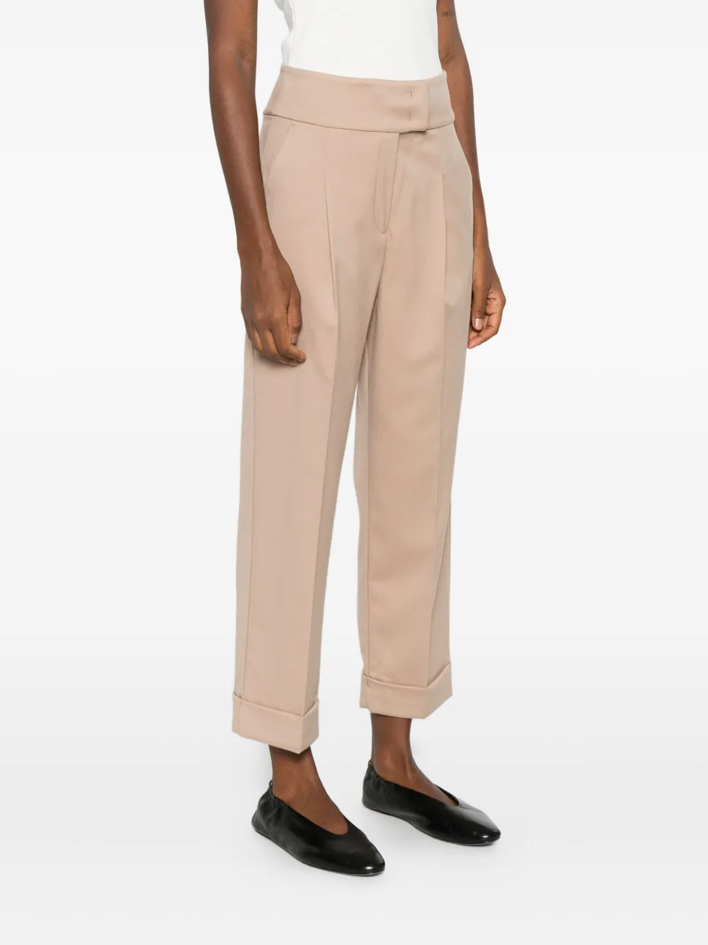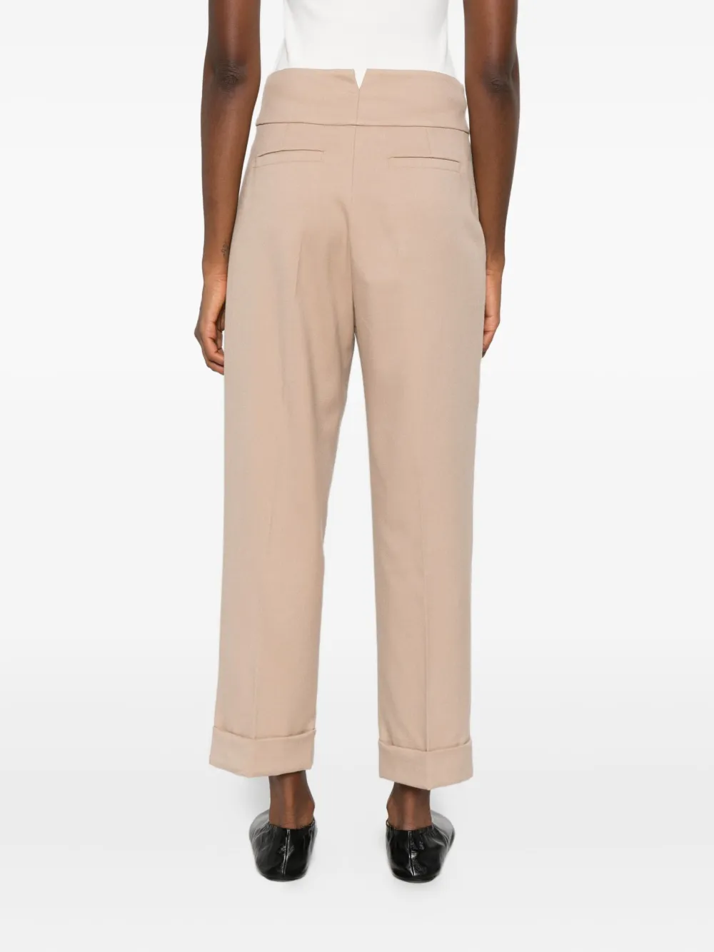 Карамельно-коричневый плиссированный перед скрытая застежка спереди прямые брючины укороченная длина