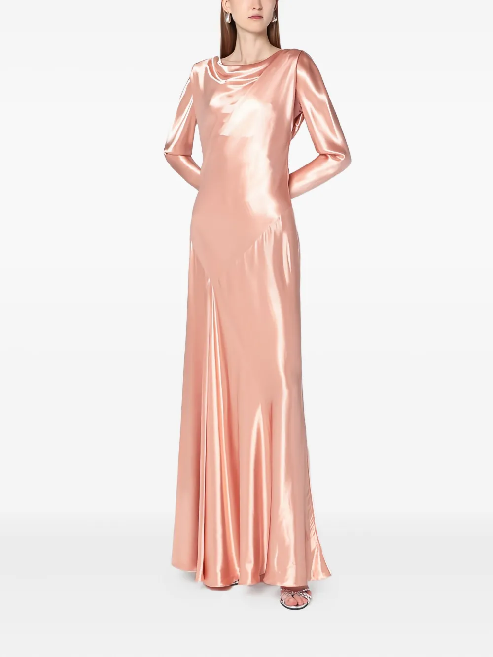 Атласное платье макси с воротником-хомутом Alberta Ferretti, розовый 88 964₽