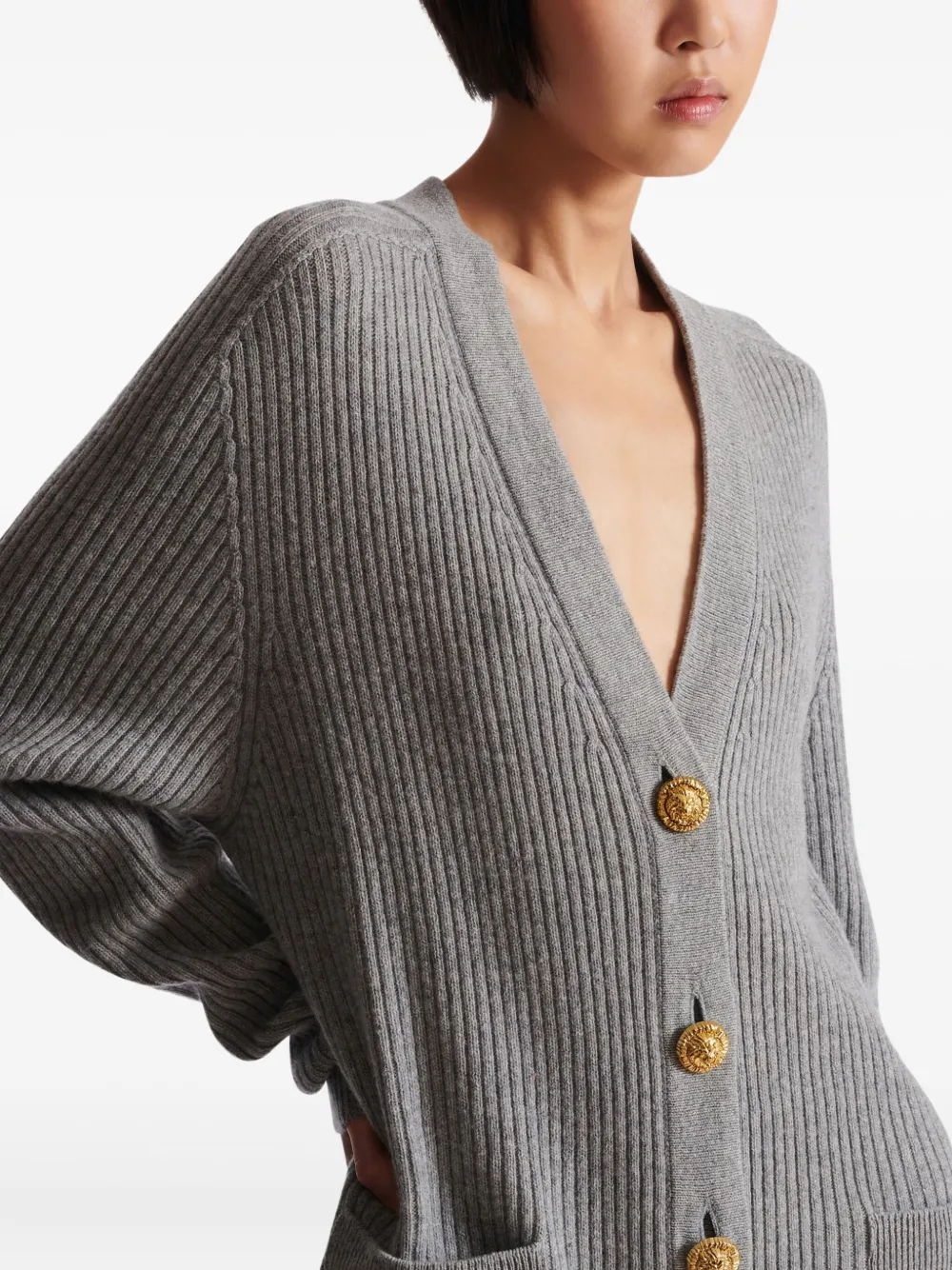 Кардиган в рубчик на пуговицах BALMAIN, серый